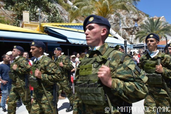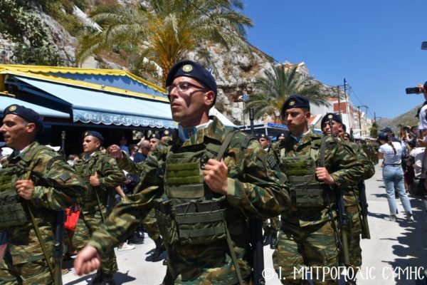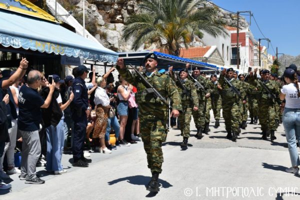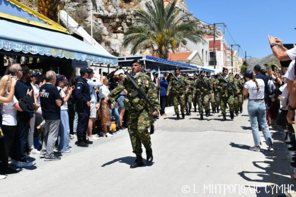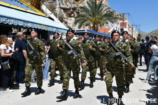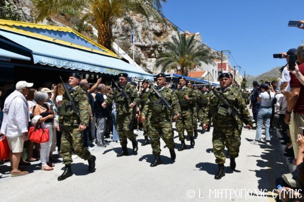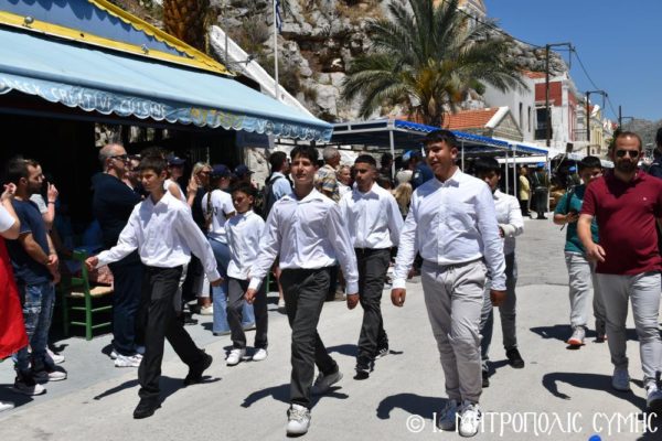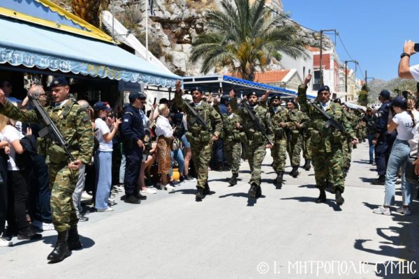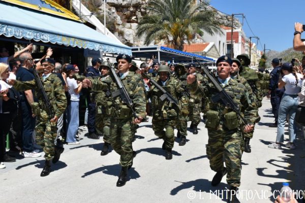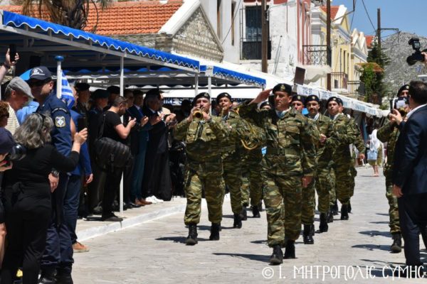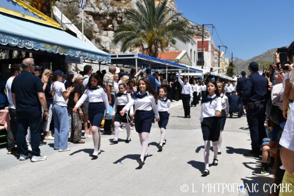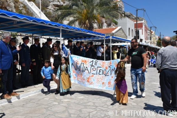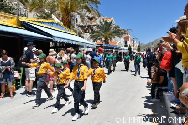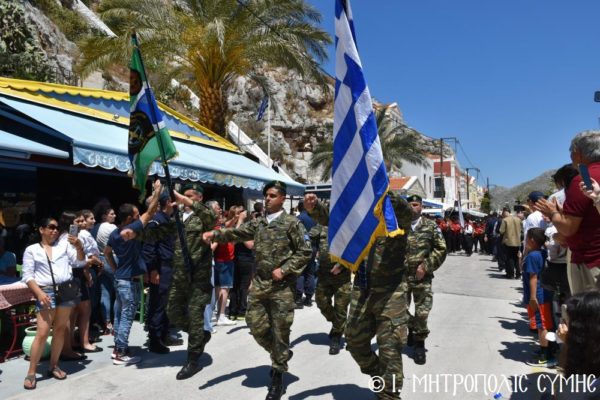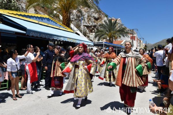 Ακολούθησε η παρέλαση τμημάτων προ των Επισήμων, των μαθητών των Σχολείων, των μελών των Συλλόγων με παραδοσιακές ενδυμασίες και του Στρατού. Η εκδήλωση έκλεισε με παράθεση γεύματος και παραδοσιακούς Δωδεκανησιακούς χορούς, που χόρεψε το χορευτικό της Ενώσεως Γυναικών Σύμης, ως και το χορευτικό της κ. Ειρήνης Μυλωνάκη.
