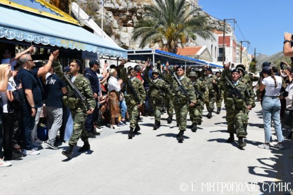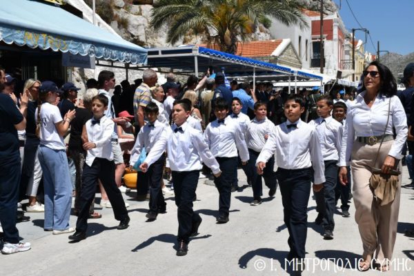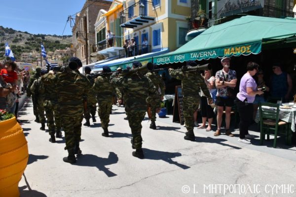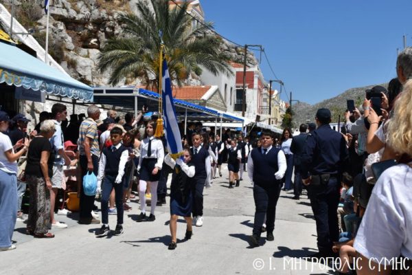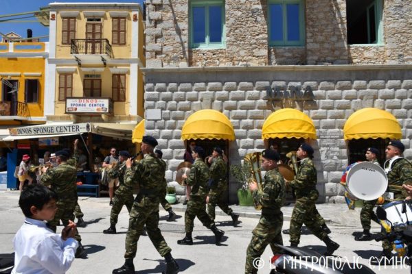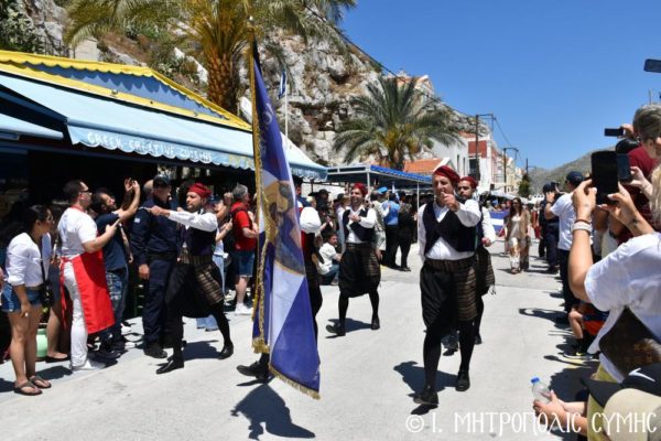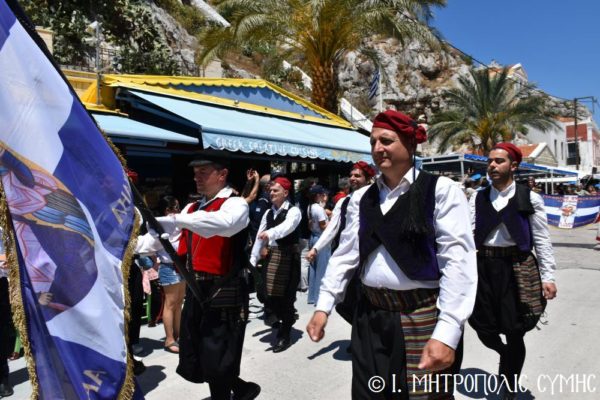 Έτσι η ημέρα αυτή είναι για το νησί της Σύμης, ημέρα λαμπρών εκδηλώσεων και τοπική αργία. Από νωρίς το πρωί χαρμόσυνες κωδωνοκρουσίες από τις Ενορίες της πόλεως έδωσαν το έναυσμα για την έναρξη των εορταστικών εκδηλώσεων, ενώ γαλανόλευκες σημαίες στόλιζαν τόσο τον χώρο του Ηρώου, όσο και ολόκληρο τον Γιαλό, αλλά και όλον τον ιστορικό οικισμό της Σύμης.