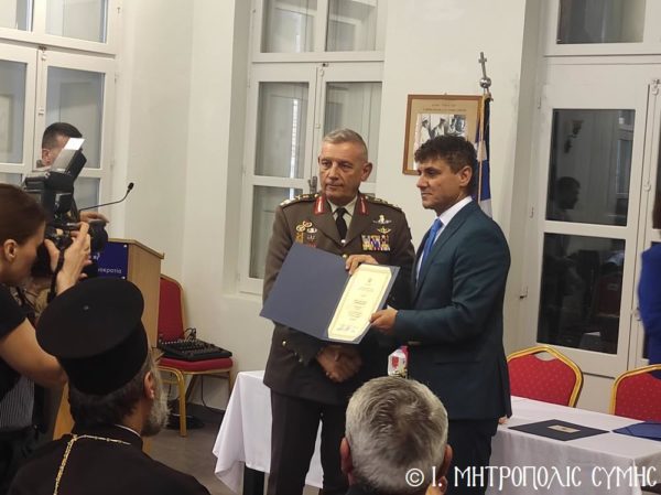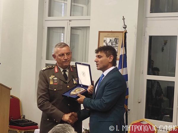 «Μεγάλη τιμή η αναγόρευσή μου σε επίτιμο δημότη Σύμης με Νίκο Παναγιωτόπουλο & κ. Σάκη Κυπραίου στην 78η επέτειο παραδόσεως στρατευμάτων κατοχής Δωδεκανήσου σε συμμάχους. Παρέμειναν ελληνικά χάρη σε αγώνες Ιερού Λόχου & σε θυσίες των κατοίκων. Δεν θα χαρίσουμε ούτε κόκκο 🇬🇷 χώματος.»