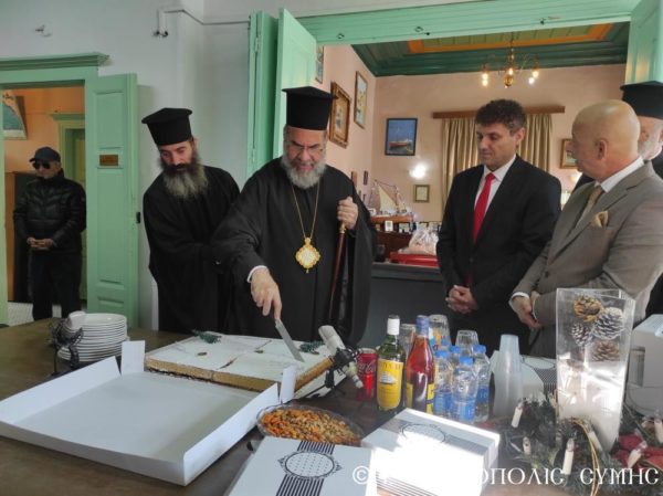 Κατόπιν, σύμφωνα με την εθιμική τάξη, ο Σεβασμιώτατος, ο Ιερός Κλήρος, οι Αρχές και όσοι επιθυμούσαν, μετέβησαν στο Δημαρχείο, όπου έγινε η κοπή της Αγιοβασιλόπιτας του Δήμου, υπό του Σεβασμιωτάτου και αντηλλάγησαν οι καθιερωμένες εόρτιες ευχές.