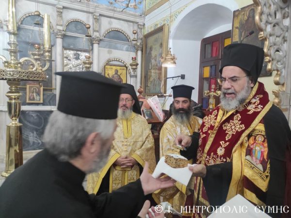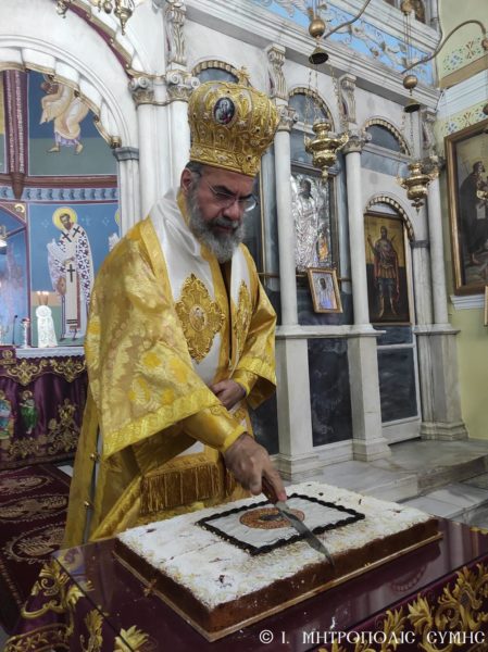 Ευθύς μετά την απόλυση της Εσπερινής Ακολουθίας, ο Σεβασμιώτατος ευλόγησε την Αγιοβασιλόπιτα της Ιεράς Μητροπόλεως και την διένειμε στους συμμετέχοντες Κληρικούς και Λαϊκούς. Παρόντες μεταξύ άλλων ήταν ο Δήμαρχος Σύμης κ. Ελευθέριος Παπακαλοδούκας, ο Διοικητής του 549 Τ.Ε. Σύμης Ανχης κ. Γεώργιος Καμπίλαυκος, η Πρόεδρος και Μέλη της Ενώσεως Γυναικών Σύμης, καθώς και πολλοί ευσεβείς Χριστιανοί.