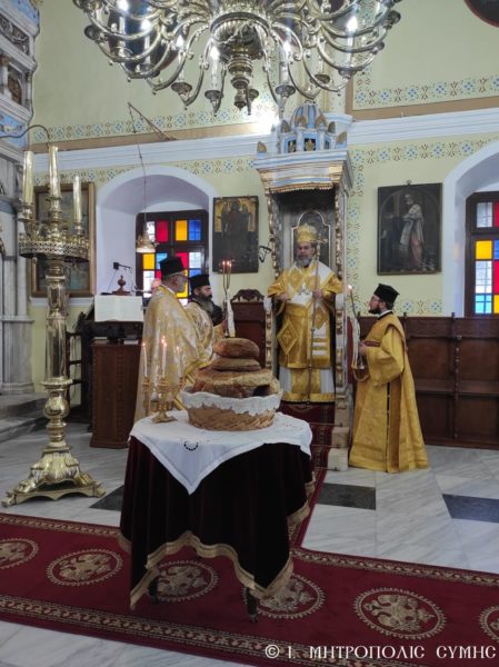 Ο Μητροπολίτης Σύμης κ. Χρυσόστομος, χοροστάτησε του Όρθρου και τέλεσε την Θεία Λειτουργία του Μεγάλου Βασιλείου, ομοίως στον Ιερό Μητροπολιτικό Τιμίου Προδρόμου, με συλλειτουργούς του τον Εφημέριο π. Στέφανο Μακρή και τους Διακόνους π. Γεώργιο Κακακιό και π. Παύλο Τερεζάκη. Το δε ιερό αναλόγιο διακόνησαν ο Πρωτοψάλτης του Μητροπολιτικού Ιερού Ναού κ. Δημοσθένης Γιανναράς μετά του υιού αυτού Μερκουρίου.