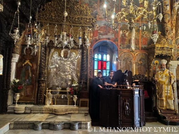 Συλλειτουργός του ήταν ο Πανοσ. Καθηγούμενος Αρχιμ. Αντώνιος Πατρός και ο Διάκονος π. Γεώργιος Κακακιός, ενώ το ι. αναλόγιο διακόνησε ο πρωτοψάλτης της Μονής κ. Μερκούριος Γιανναράς.