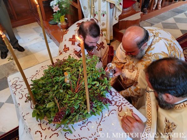 Σήμερα το πρωί, κυριώνυμο ημέρα της Εορτής, ο Σεβ. Μητροπολίτης Σύμης, Τήλου-Χάλκης και Καστελλορίζου κ. Χρυσόστομος χοροστάτησε στον Όρθρο και τέλεσε την Θ. Λειτουργία στον πανηγυρίζοντα Ενοριακό Ι. Ναό του Τιμίου Σταυρού Σύμης, με συλλειτουργούς του τον π. Ελευθέριο Οθίτη, τον π. Γεώργιο Χατζηχρυσάφη, τον π. Φιλόθεο Κάλφα και τον Διάκονο π. Γεώργιο Κακακιό. Την ιερά υμνωδία απέδωσαν ο Πρωτοψάλτης της Ι. Μονής Πανορμίτου, Αναγνώστης κ. Μερκούριος Γιανναράς και ο Ιεροψάλτης κ. Δημήτριος Κοπανίδης.