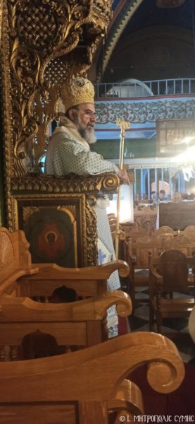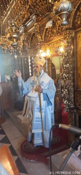 Ο Σεβασμιώτατος, ομίλησε αφορμώμενος από το ευαγγελικό ανάγνωσμα και ανεφέρθη στην συνάντηση του Χριστού με την Σαμαρείτισσα γυναίκα, την οποία συνάντησε κουρασμένος καθώς ήταν από την οδοιπορία, δίπλα στο πηγάδι του Ιακώβ, όταν εκείνη ήλθε για να αντλήσει ύδωρ. Με αφορμή το αίτημα του Κυρίου να Του προσφέρει να πιεί, εκτυλίσσεται μεταξύ τους ένας καταπληκτικός θεολογικότατος διάλογος.