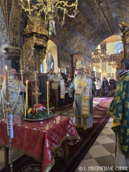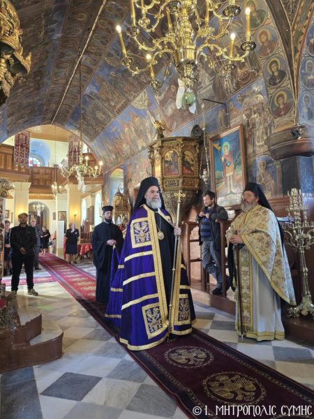 Σήμερα, 23 Μαρτίου 2025, Κυριακή της Σταυροπροσκυνήσεως, ο Σεβ. Μητροπολίτης Σύμης κ. Χρυσόστομος προσέφερε την αναίμακτη Θεία Λατρεία στο Ι. Θυσιαστήριο του ιστορικού Ενοριακού Ναού του Τιμίου Σταυρού της Σύμης.