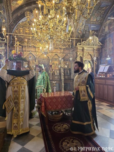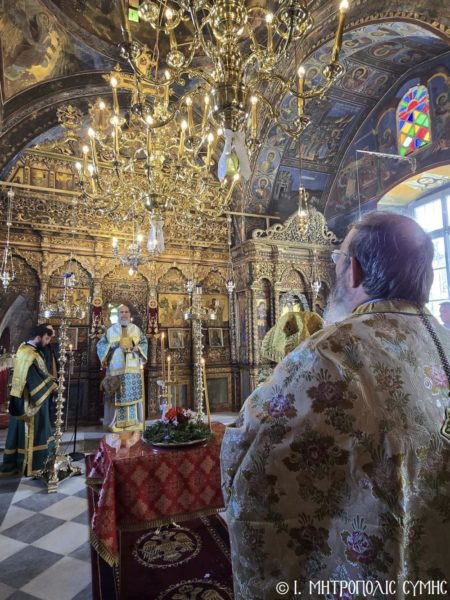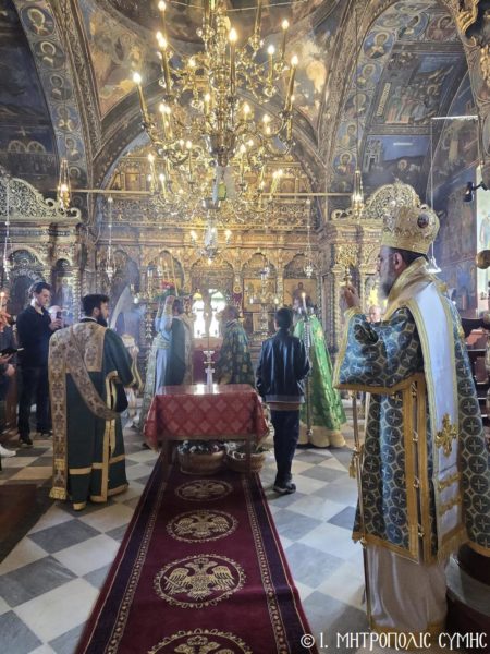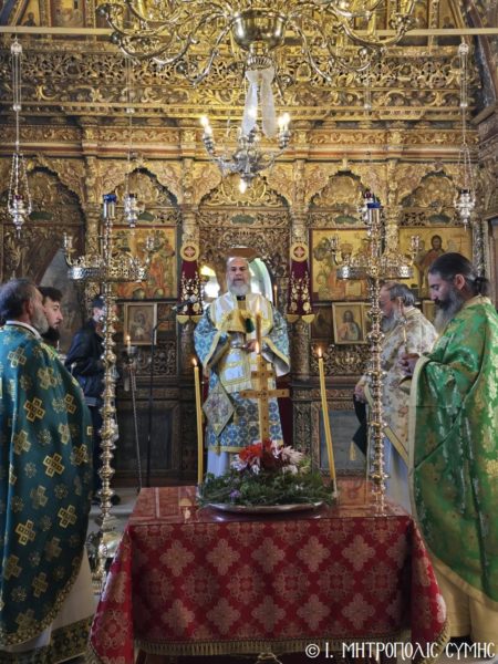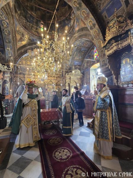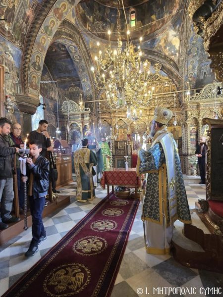Ο Σεβασμιώτατος συλλειτούργησε με τον Αρχιμ. του Οικουμενικού Θρόνου και Ηγούμενο της Ι. Μονής Πανορμίτου π. Αντώνιο Πατρό, τον π. Παντελεήμονα Μακρόπουλο, τον π. Γεώργιο Κακακιό και τον Ιεροδιάκονο π. Παύλο Τερεζάκη, ενώ το ι. Αναλόγιο διακόνησαν ο Ιεροψάλτης κ. Ελευθέριος Ξηράκης μεθ’ ετέρων.