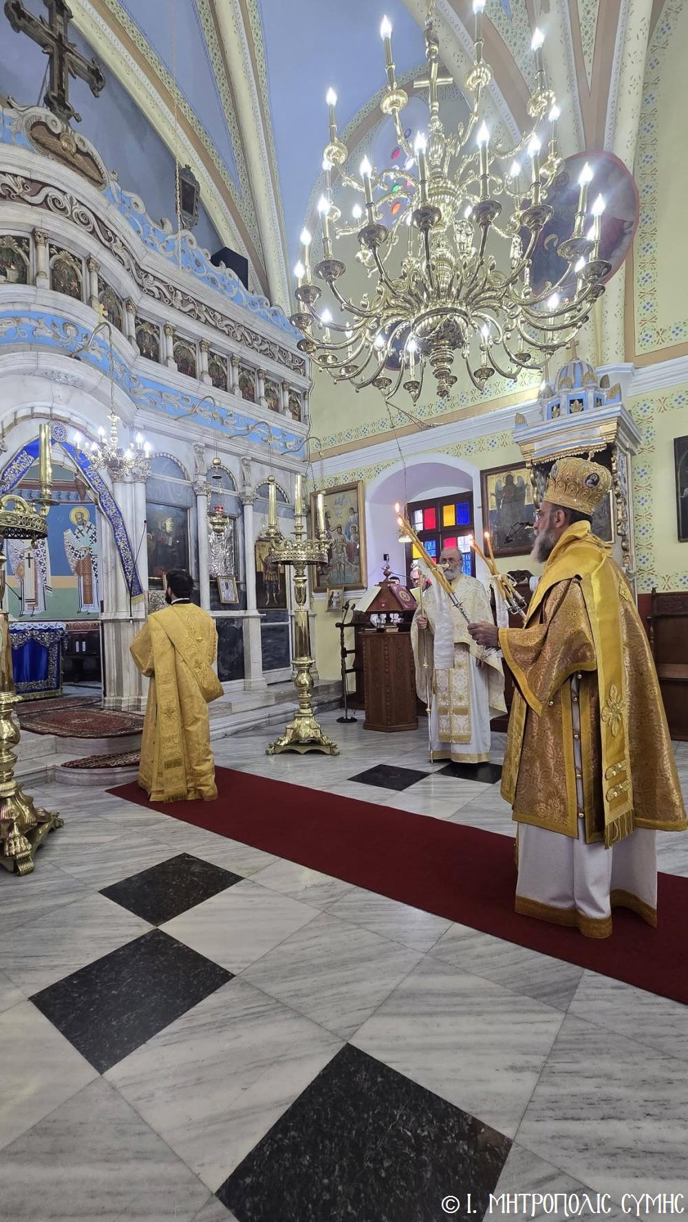 Ο Σεβασμιώτατος τέλεσε την Θεία Λειτουργία με συλλειτουργούς του, τον Εφημέριο και Γεν. Αρχιερατικό Επίτροπο Πρωτοπρ. Στέφανο Μακρή και τον Ιεροδιάκονο π. Παύλο Τερεζάκη. Το ι. αναλόγιο διακόνησαν γλυκυφθόγγως οι Ιεροψάλτες κ. Δημοσθένης και Μερκούριος Γιανναράς, ως και ο κ. Ελευθέριος Ξηράκης.