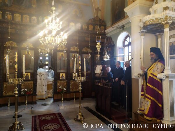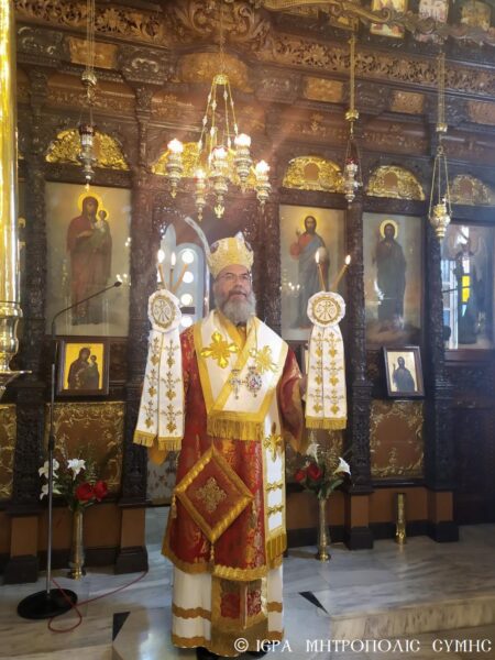 Στην Ακολουθία του Όρθρου χοροστάτησε ο Σεβασμιώτατος Μητροπολίτης Σύμης, Χάλκης και Καστελλορίζου κ. Χρυσόστομος και στη συνέχεια τέλεσε τη Θεία Λειτουργία στον Ενοριακό Ιερό Ναό Ευαγγελισμού της Θεοτόκου Σύμης το πρωί της Κυριακής 31 Μαΐου 2020, των Αγίων Πατέρων, ενώ συλλειτουργοί του ήταν ο π. Αντώνιος Μανιάς ο οποίος είναι ο εφημέριος του Ιερού Ναού και ο Διάκονος π. Γεώργιος Κακακιός.