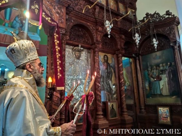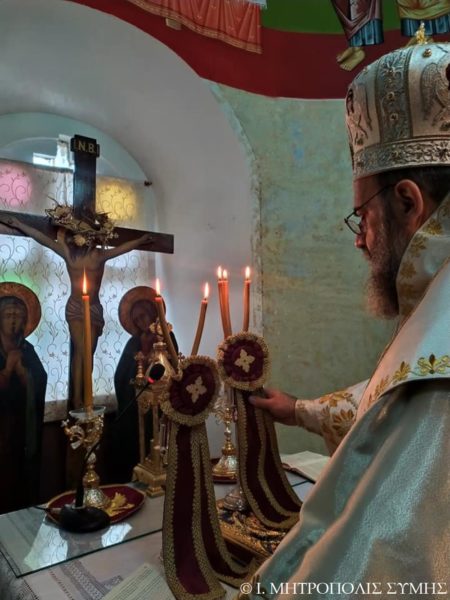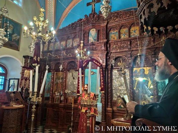 Την Κυριακή των Αγίων Προπατόρων ο Σεβασμιώτατος Μητροπολίτης Σύμης, Τήλου, Χάλκης και Καστελορίζου κ. Χρυσόστομος χοροστάτησε του Όρθρου και τέλεσε την Θεία Λειτουργία στον Ενοριακό Ιερό Ναό της Μεγάλης Παναγίας του Κάστρου με συλλειτουργούς τον π. Παντελεήμονα Μακρόπουλο εφημέριο της ἐνορίας καθώς καί τόν Διάκονο π Γεώργιον Κακακιό.