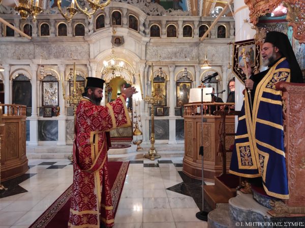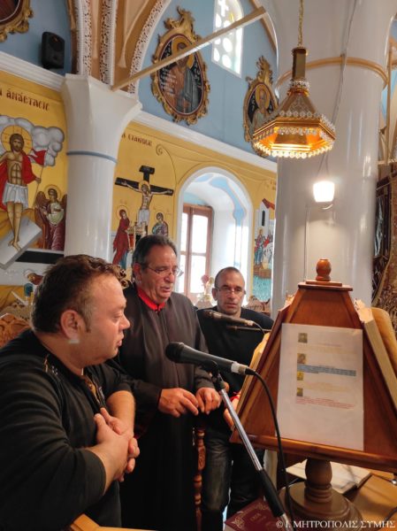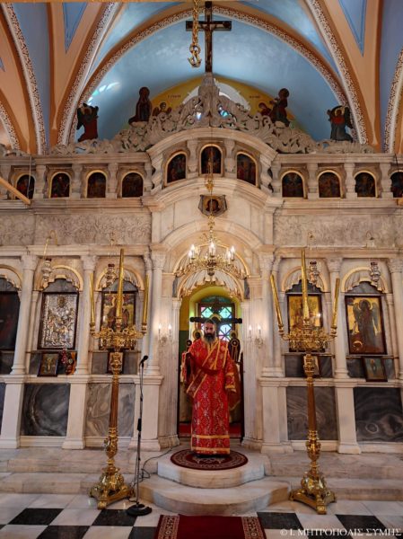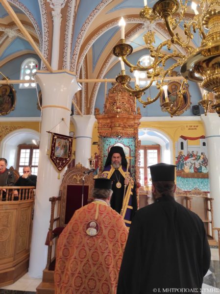 Ο Σεβασμιώτατος Μητροπολίτης Σύμης, Τήλου, Χάλκης και Καστελλορίζου κ. Χρυσόστομος χοροστάτησε στον Όρθρο και τέλεσε την Θ. Λειτουργία, στον ενοριακό Ι. Ναό Αγίου Αθανασίου Σύμης, την Κυριακή 28 Νοεμβρίου 2021, Κυριακή ΙΓ΄ Λουκά, με συλλειτουργούς του τον Εφημέριο της Ενορίας π. Ελευθέριο Οθίτη και τον Διάκονο π. Γεώργιο Κακακιό, ενώ το ιερό Αναλόγιο διηκόνησαν γλυκυφθόγγως οι Ιεροψάλτες κ. Γεώργιος Μοσκιού, κ. Αγαπητός Μιχελής και Εμμανουήλ Κυπριώτης .