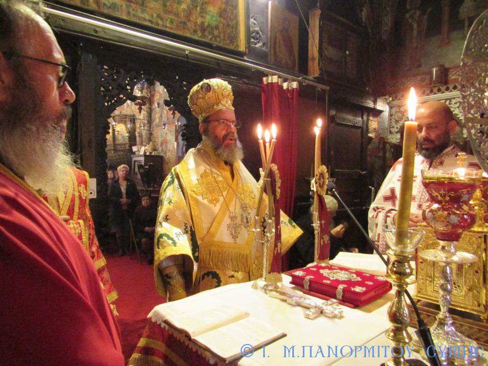 Συλλειτουργοί του ἦσαν ὁ Πανοσιολ. Καθηγούμενος τῆς Ἱ. Μονῆς Ἀρχιμ. τοῦ Οἰκουμενικοῦ Θρόνου π. Ἀντώνιος Πατρός, ὁ Ἐφημέριος τῆς Ἐνορίας Ἁγ. Ἐλευθερίου Σύμης π. Δημήτριος Γεωργιάδης καί ὁ Διάκονός του π. Γεώργιος Κακακιός. Συμπροσευχόμενος ἀπό τοῦ Ἱ. Βήματος ἦταν ὁ Ἀρχιμ. π. Ἱερόθεος Κοενάκης, ἀδελφός τῆς Μονῆς, ἐνῶ πρό τῆς Ἀπολύσεως ἀφίχθη καί ὁ Γεν. Ἀρχιερατικός Ἐπίτροπος, Πρωτοπρ. Στέφανος Μακρῆς καθώς καί ὁ Ἄρχων Δικαιοφύλαξ τοῦ Οἰκουμενικοῦ Θρόνου καί ἀναπλ. Νομικός Σύμβουλος τῆς Ἱ. Μονῆς, κ. Θεόδωρος Μ. Παπαγεωργίου.