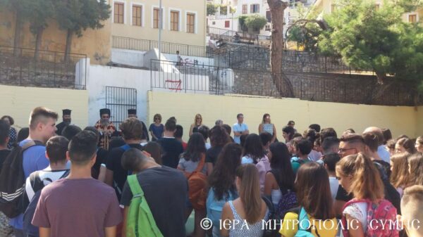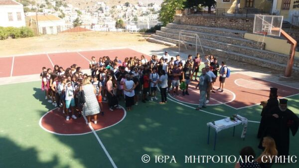 Τήν Τετάρτη 11η Σεπτεμβρίου τό πρωί, πρώτη ἡμέρα τοῦ φετινοῦ σχολικοῦ ἔτους, ὁ Σεβασμιώτατος Μητροπολίτης Σύμης, κ. Χρυσόστομος, τέλεσε τόν καθιερωμένο ἁγιασμό, ἐπί τῇ ἐνάρξει τῶν μαθημάτων σέ ὅλα τά Σχολεῖα τοῦ νησιοῦ.