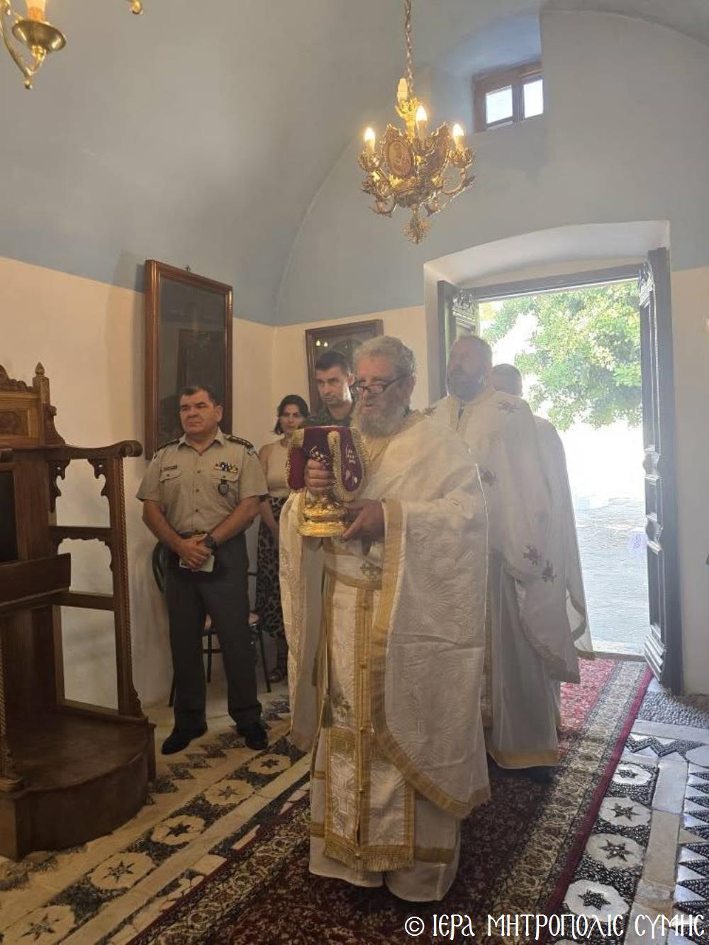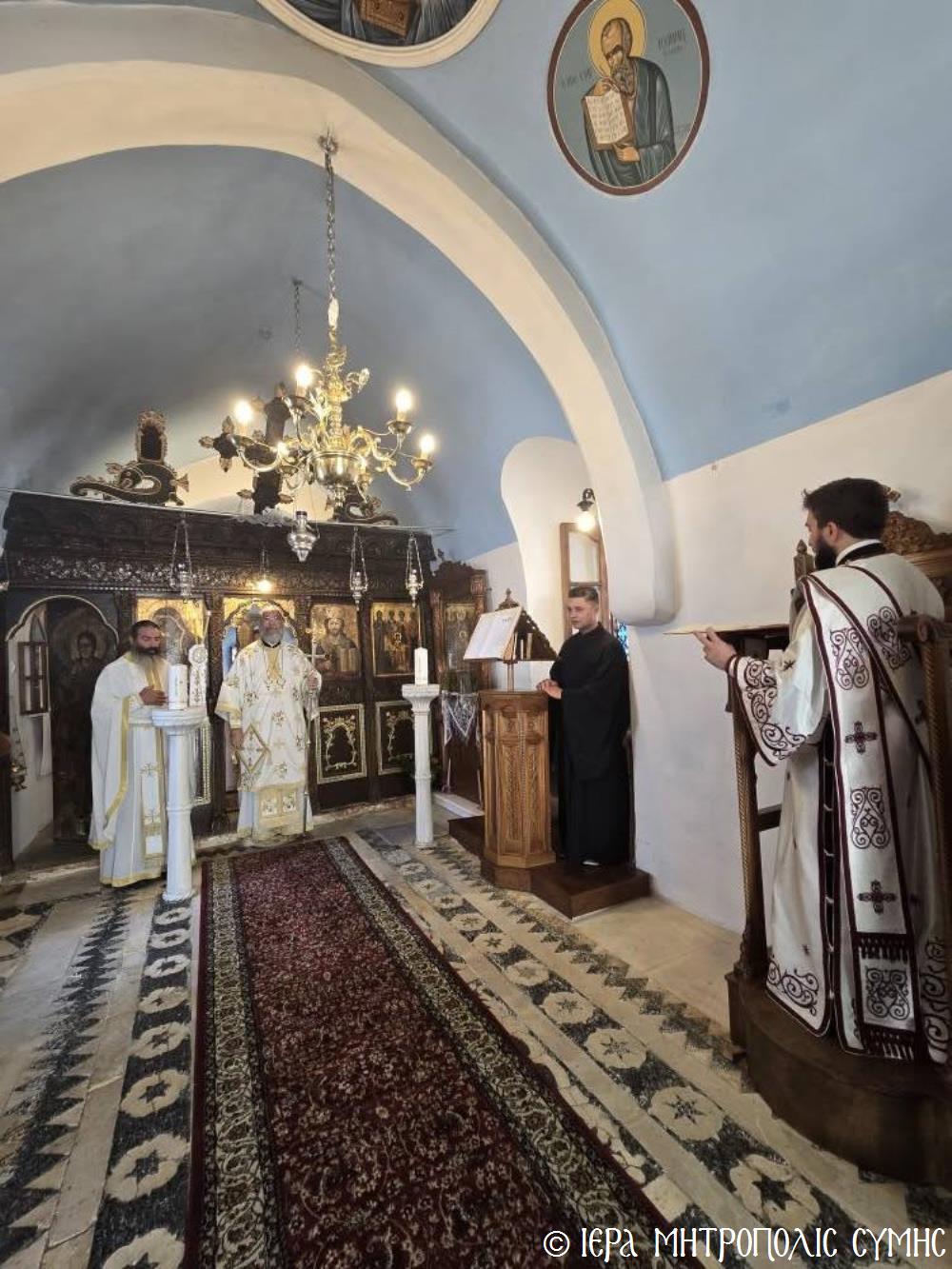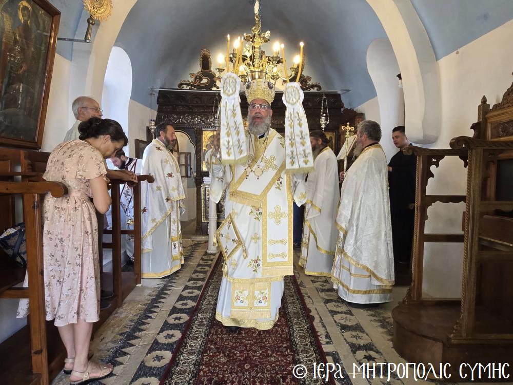 Σήμερα Πέμπτη 17η Ιουλίου, κυριώνυμος ημέρα της εορτής, ο Σεβ. Μητροπολίτης Σύμης κ. Χρυσόστομος χοροστάτησε στον Όρθρο και εν συνεχεία τέλεσε την Θεία Λειτουργία στον παλαίφατο Κοιμητηριακό Ναό της Αγίας στο Χωριό, όπου στα χρόνια της σκλαβιάς λειτουργούσε η ξακουστή «Σχολή της Αγίας Μαρίνας», ομιλώντας για την ζωή και το διδακτικό παράδειγμα της Αγίας. Συλλειτούργησαν, ο Οικονόμος π. Ελευθέριος Οθίτης, ο π. Αντώνιος Μανιάς, ο π. Γεώργιος Κακακιός και ο Ιεροδιάκονος π. Παύλος Τερεζάκης, ενώ το ι. αναλόγιο διακόνησe μελιρρύτως ο Ιεροψάλτης κ. Ελευθέριος Ξηράκης.