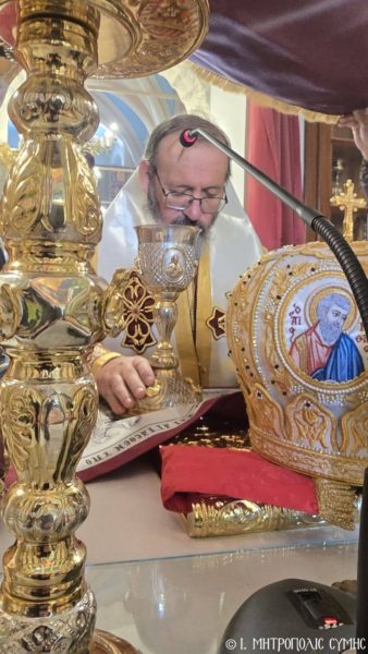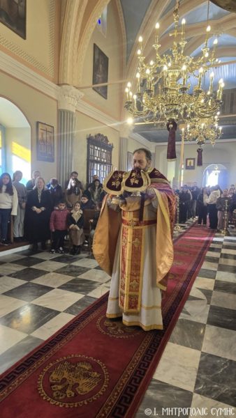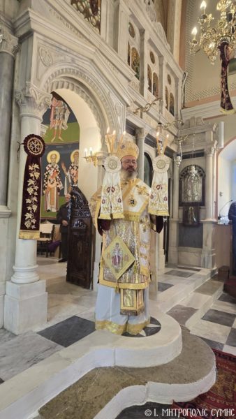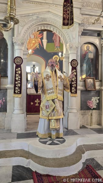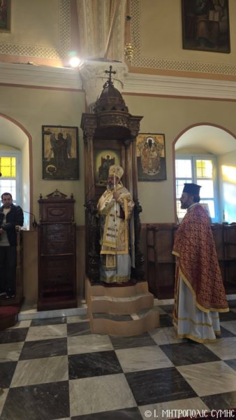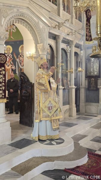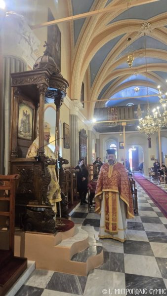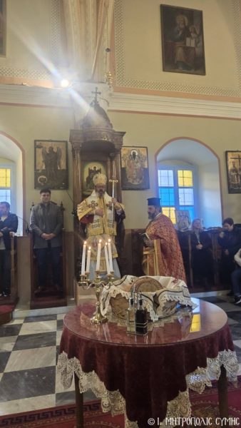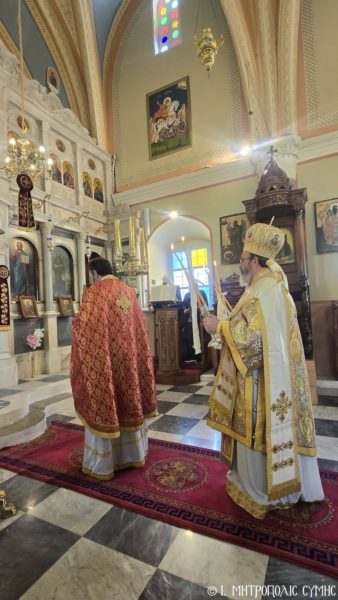 Το πρωί στον Ιερό Ενοριακό Ναό Αγίου Ελευθερίου Σύμης, χοροστάτησε του Όρθρου και τέλεσε την Θεία Λειτουργία ο Θεοφιλέστατος Επίσκοπος Ροδοστόλου κ. Αντώνιος, Βοηθός του Σεβασμιωτάτου Μητροπολίτου Σύμης, Τήλου, Χάλκης και Καστελλορίζου κ. Χρυσοστόμου, με συλλειτουργό του τον Πρεσβύτερο π. Αντώνιο Μανιά, ενώ το ιερό αναλόγιο διακόνησαν, ο κ. Μερκούριος Γιανναράς, Εκπαιδευτικός και ο κ. Ιωάννης Τσίγκος.