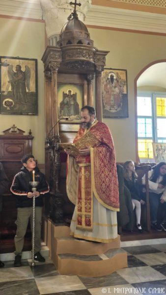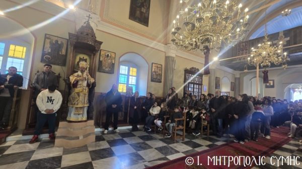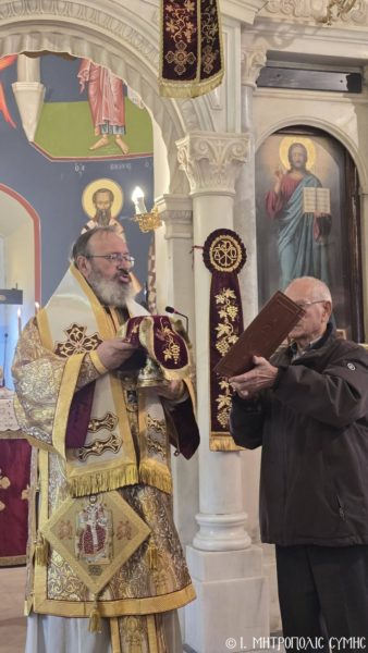 Κατά την απόλυση της Θείας Λειτουργίας ο Θεοφιλέστατος Επίσκοπος κ. Αντώνιος, ευχήθηκε τα δέοντα σε εκπαιδευτικούς και μαθητές και μετέφερε σε όλους την πατρική αγάπη του Σεβασμιωτάτου Μητροπολίτου Σύμης, Τήλου, Χάλκης και Καστελλορίζου κ. Χρυσοστόμου.
