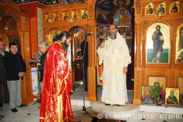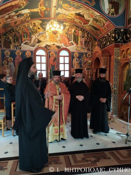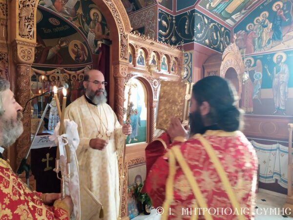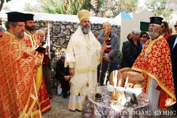 Ὁ Σεβ. Ποιμενάρχης Σύμης κ. Χρυσόστομος χοροστάτησε στόν Ὄρθρο καί ἱερούργησε τό Μυστήριο τῆς Θείας Εὐχαριστίας, μέ συλλειτουργούς του τόν π. Ἐλευθέριο Ὀθείτη, τόν π. Χρῆστο Σταθόπουλο καί τόν Διάκονο π. Γεώργιο Κακακιό, ἐνῶ τό ἀναλόγιο διακόνησαν οἱ Ἱεροψάλτες κ. Ἐμμανουήλ Κυπριώτης καί κ. Νικήτας Βογιατζής.