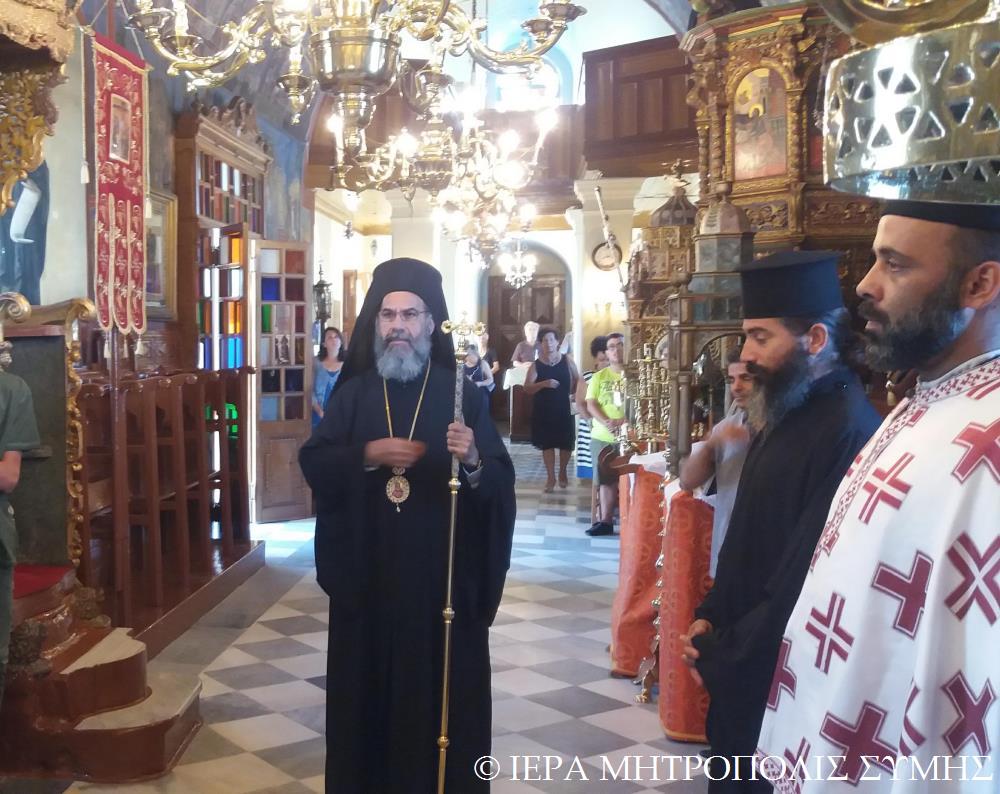 Την Κυριακή 18 Αυγούστου, ο Σεβ. Μητροπολίτης Σύμης, Τήλου, Χάλκης και Καστελορίζου, κ. Χρυσόστομος χοροστάτησε στον Όρθρο και τέλεσε την Θεία Λειτουργία στον Ιερό Ενοριακό Ναό Τιμίου Σταυρού του Χωριού στη Σύμη.