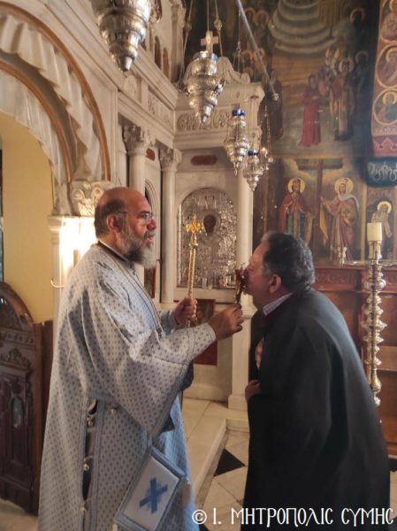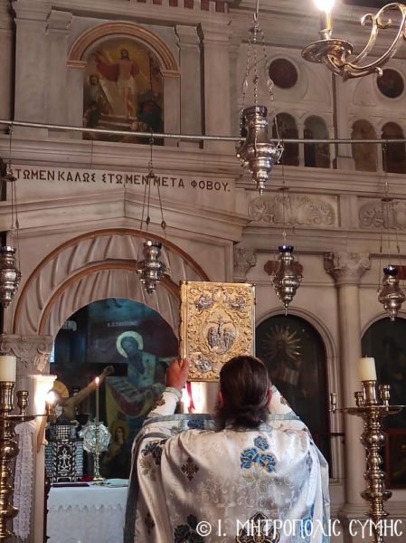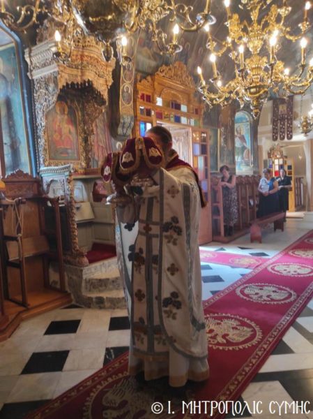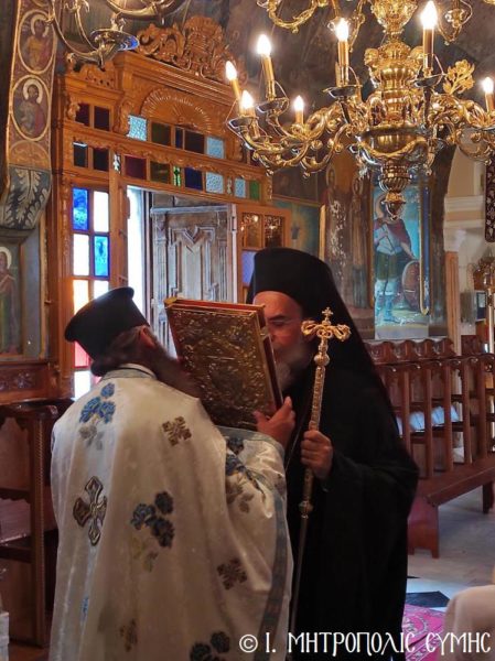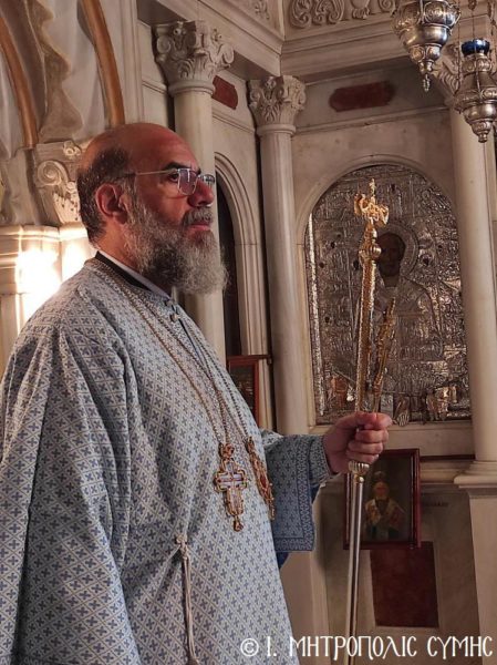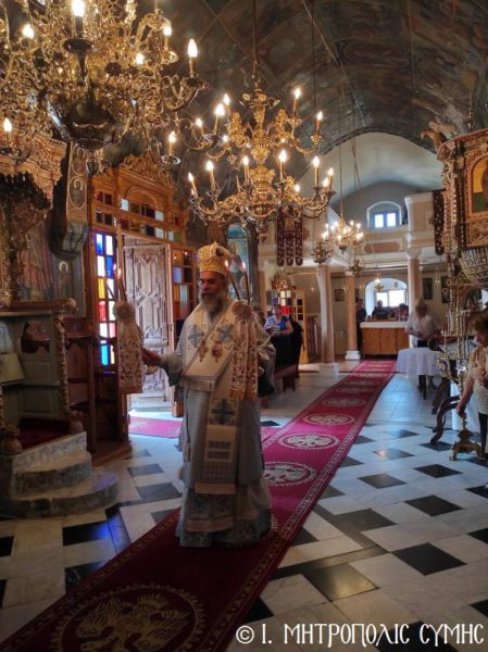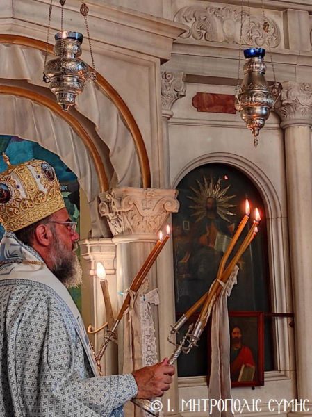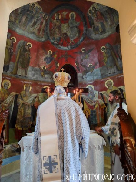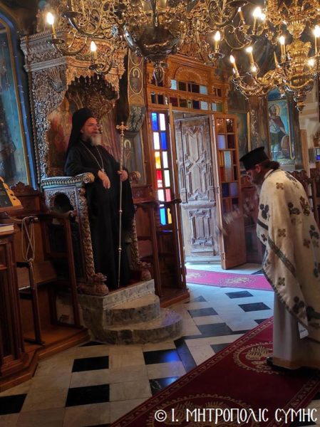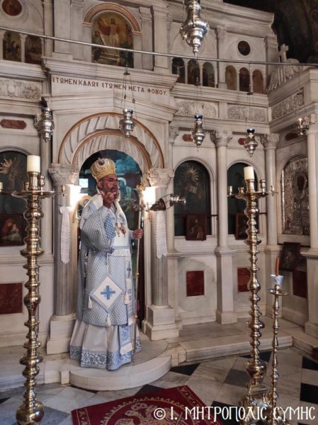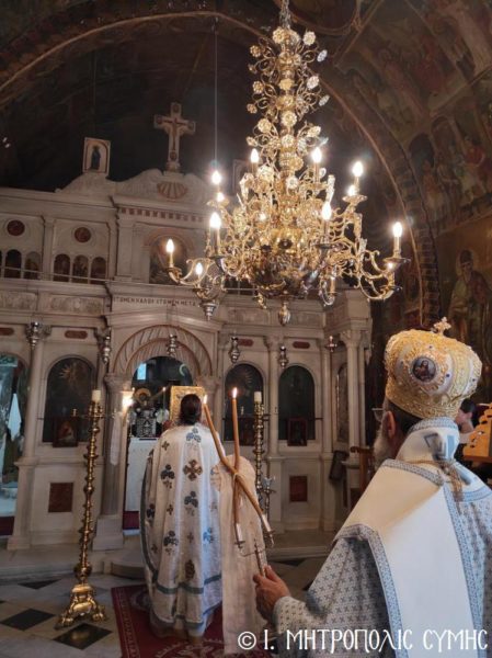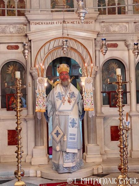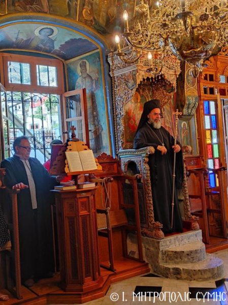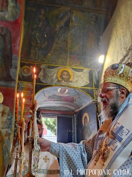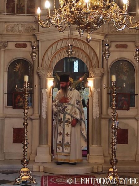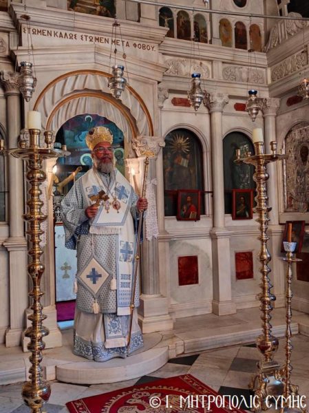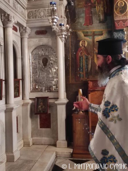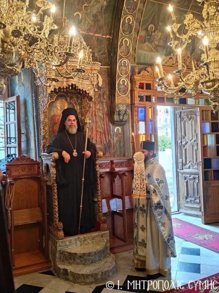 Ο Σεβασμιώτατος Μητροπολίτης Σύμης, Τήλου, Χάλκης και Καστελλορίζου κ. Χρυσόστομος χοροστάτησε στον Όρθρο και τέλεσε τη Θεία Λειτουργία στον Ιερό Ενοριακό Ναό Αγίου Νικολάου Σύμης την Κυριακή Β΄ Ματθαίου, 18 Ιουνίου 2023, με συλλειτουργό του τον Αιδεσιμ. Πρεσβύτερο π. Γεώργιο Κακακιό, στον οποίο, μετά την εις Πρεσβύτερον πρόσφατη χειροτονία του, έχει αναθέσει τα ιερατικά και εφημεριακά καθήκοντα της μέχρι πρότινος κλειστής αυτής Ενορίας.