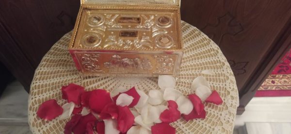Ο Σεβασμιώτατος κ. Ναθαναήλ, αφού καλοσώρισε τον Σεβασμιώτατο κ. Χρυσόστομο, τον προσκάλεσε να καθιερώσει την ετήσια συμμετοχή του στον εορτασμό της Ανακομιδής των λειψάνων του Αγίου στο Ιερό Βαπτιστήριο που έκτισε.