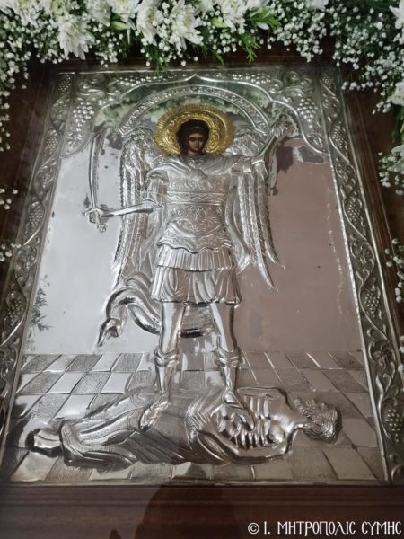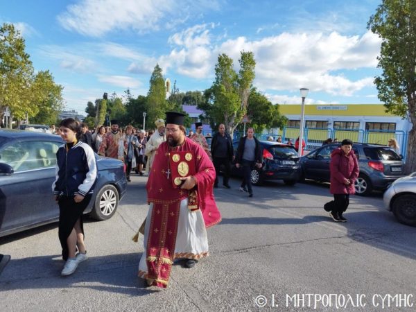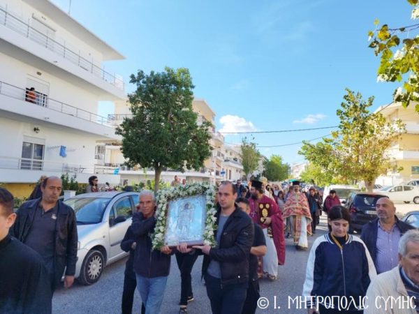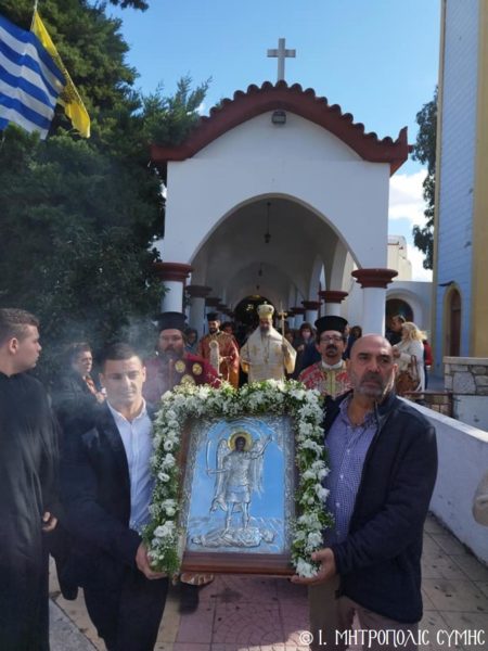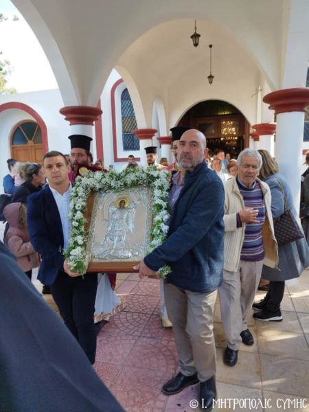 Στο τέλος ο Σεβαμσιώτατος προέστη της Λιτανείας, πέριξ του Ι. Ναού, της Εικόνας του Ταξιάρχου Μιχαήλ του Πανορμίτου, αντιγράφου της πρωτοτύπου, που φυλάσσεται προς ευλογία των Μελών του Συλλόγου στο «Συμιακό σπίτι».