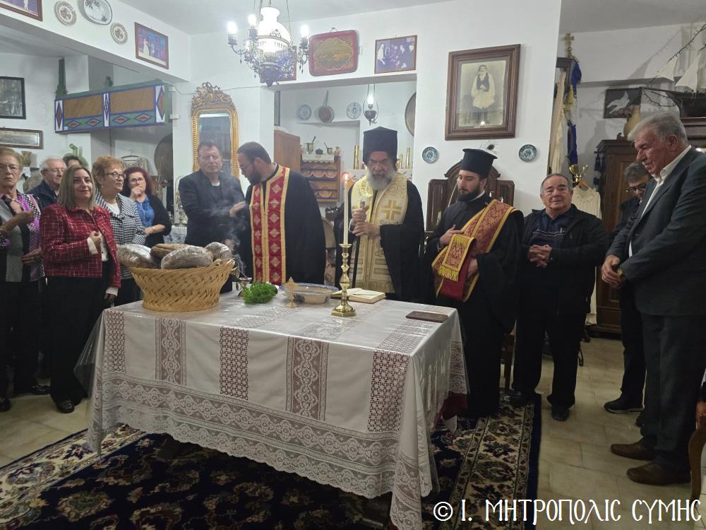Το βράδυ του Σαββάτου, ο Σεβασμιώτατος επισκέφθηκε το «Συμιακό σπίτι» με τον υπέροχο εκθεσιακό του χώρο, όπου ευλόγησε την Αρτοκλασία και τέλεσε Αγιασμό, ενώ του εδόθη η ευκαιρία να συνομιλήσει και να επικοινωνήσει με τον πρόεδρο του Συλλόγου κ. Σωτήριο Ζουρούδη, ο οποίος τον προσφώνησε επισήμως, καθώς και τους παρισταμένους Συμιακούς της Ρόδου, αλλά και τους προσκεκλημένους τους. Η όλη επιτυχημένη εκδήλωση έκλεισε με την προσφορά πλουσίων παραδοσιακών κερασμάτων.