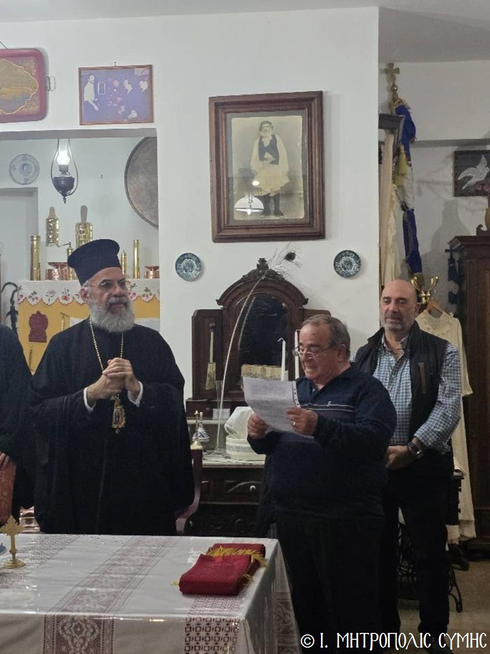 Ο Σεβ. Μητροπολίτης κ. Κύριλλος, ομίλησε καταλλήλως και ευχαρίστησε τον Σεβ. Άγιον Ρόδου κ. Κύριλλο, ως και τον π. Ιωαννίκιο διά την φιλοξενία και την εγνωσμένη αγάπη των. Στις εορταστικές εκδηλώσεις συμμετείχαν μεταξύ άλλων, ο εκ Σύμης καταγόμενος Βουλευτής Δωδεκανήσου κ. Βασίλειος Υψηλάντης, ο Άρχων Οφφικιάλιος του Οικουμενικού Πατριαρχείου, κ. Θεόδωρος Παπαγεωργίου, Νομικός Σύμβουλος και Μέλος του Μητροπολιτικού Συμβουλίου της Ι. Μητροπόλεως Σύμης, ο προαναφερθείς Πρόεδρος του Συλλόγου κ. Σωτήριος Ζουρούδης, ο κ. Εμμανουήλ Αντωνόγλου, ψυχή του Συμαϊκού Θεάτρου και εξέχον Μέλος του Δ.Σ. του Συλλόγου, ο κ. Σωτήριος Πατατούκος, ο κ. Κων/νος Οθίτης κ.α.