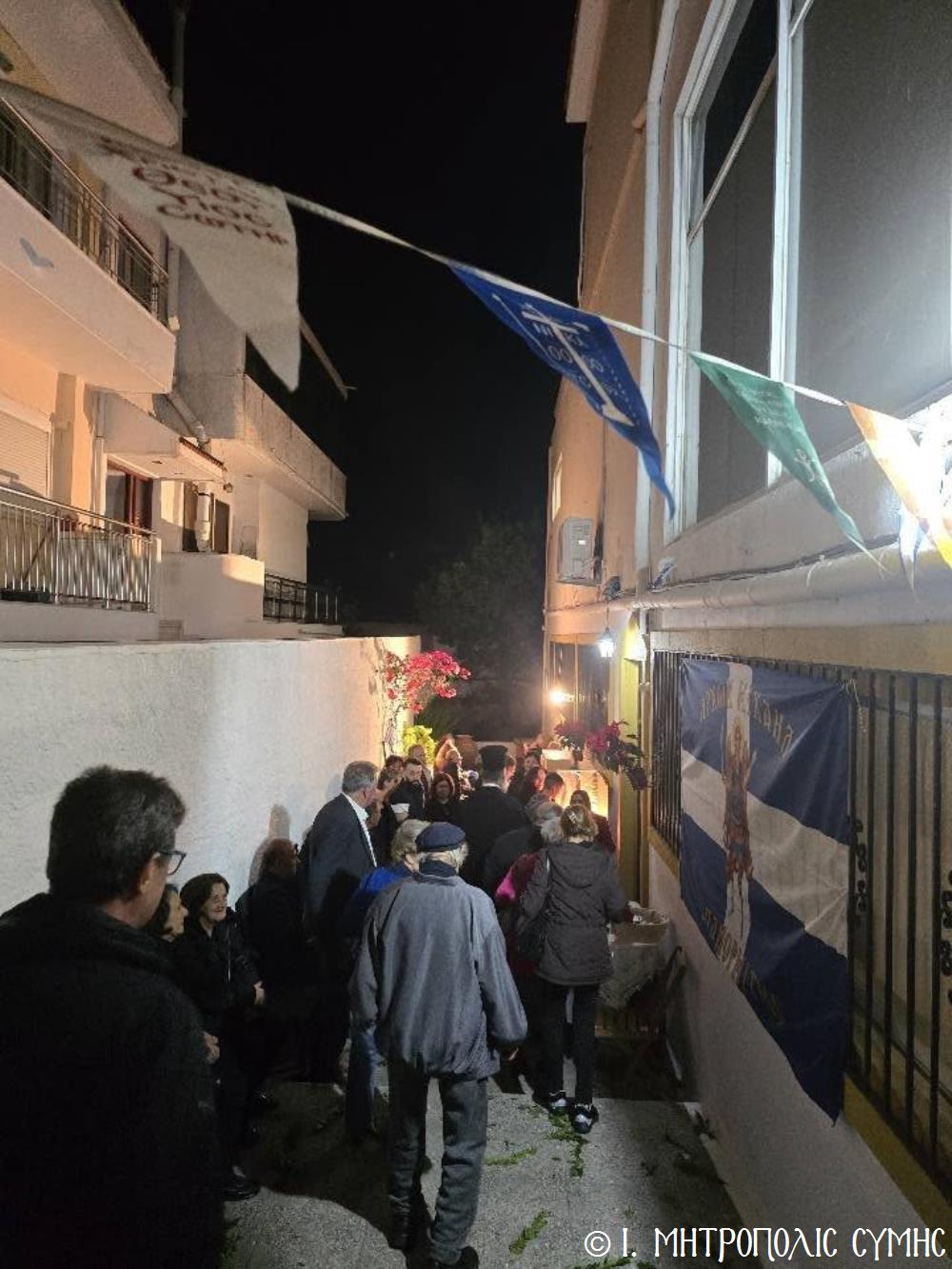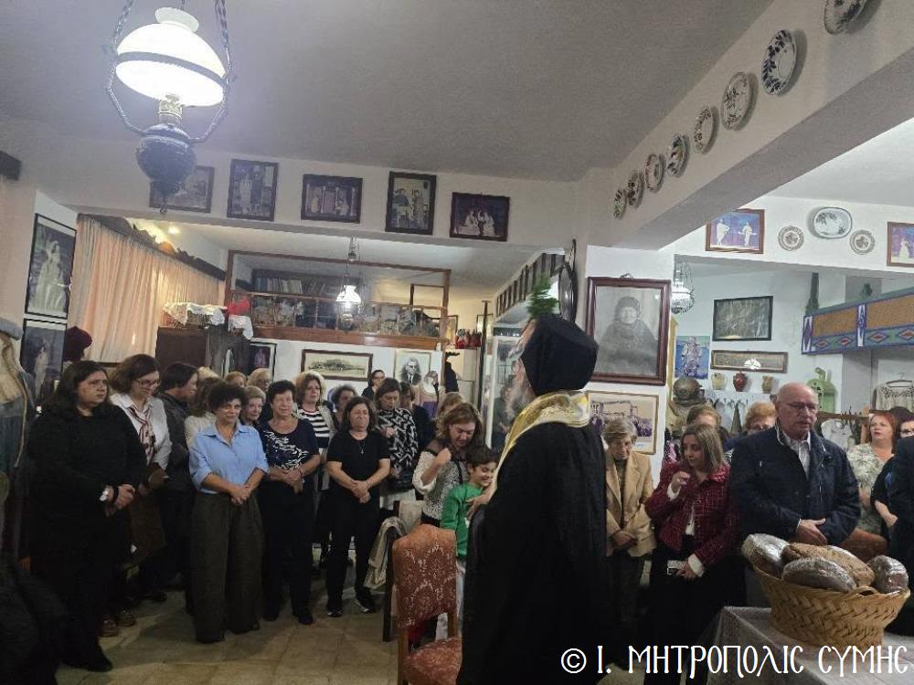 Το βράδυ του Σαββάτου, ο Σεβασμιώτατος επισκέφθηκε το «Συμιακό σπίτι» με τον υπέροχο εκθεσιακό του χώρο, όπου ευλόγησε την Αρτοκλασία και τέλεσε Αγιασμό, ενώ του εδόθη η ευκαιρία να συνομιλήσει και να επικοινωνήσει με τον πρόεδρο του Συλλόγου κ. Σωτήριο Ζουρούδη, ο οποίος τον προσφώνησε επισήμως, καθώς και τους παρισταμένους Συμιακούς της Ρόδου, αλλά και τους προσκεκλημένους τους. Η όλη επιτυχημένη εκδήλωση έκλεισε με την προσφορά πλουσίων παραδοσιακών κερασμάτων.