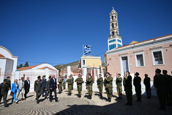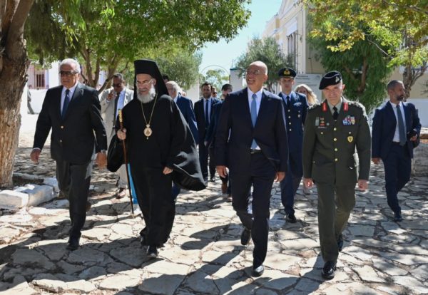 Τον υπουργό συνόδευσαν ο Αρχηγός ΓΕΣ Αντιστράτηγος Γεώργιος Κωστίδης, ο Διοικητής της ΑΣΔΕΝ Αντιστράτηγος Εμμανουήλ Θεοδώρου και ο Διοικητής της 95 ΑΔΤΕ Υποστράτηγος Εμμανουήλ Χατζής. Ακολούθως, ο υπουργός μετέβη στο Ηρώο του νησιού και κατέθεσε στέφανο.