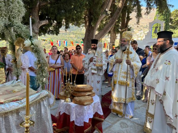 Ο Σεβασμιώτατος κοινώνησε τους προσκυνητές και μίλησε για το νόημα της σπουδαίας ημέρας της ζωής της Εκκλησίας. Μετά το πέρας της Θείας Λειτουργίας μίλησε αποκλειστικά στο Διεθνές Πρακτορείο Εκκλησιαστικών ειδήσεων “Ορθοδοξία” (ope.gr); “Και φέτος με τη χάρη του Θεού γιορτάσαμε και γιορτάζουμε όλες αυτές τις ημέρες του Δεκαπενταύγουστου με τις Παρακλήσεις σε όλες τις ενορίες, σε όλα τα ιερά προσκυνήματα από τα οποία κοσμείται η Σύμη και τα άλλα νησιά μας” αναφέρει αρχικά και μεταξύ άλλων ο Σεβασμιώτατος και εν συνεχεία συμπληρώνει, “Ακόμη και ο πιο απομακρυσμένος τόπος στη χώρα μας έχει έστω κάποιο προσκύνημα, ένα εξωκκλήσι και ένα παρεκκλήσιο που να τιμάται επ ‘ ονόματι της Παναγίας μας”.