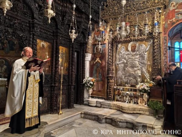 Χοροστάτησε στους εσπερινούς και έψαλε με το χαρακτηριστικό και ιδιαίτερο Αγιορειτικό ύφος τον Μικρό και Μεγάλο Παρακλητικό Κανόνα. Στο τέλος των ακολουθιών, ομιλούσε στους πιστούς για το Θεομητορικό Πρόσωπο της Υπεραγίας Θεοτόκου και τον κορυφαίο ρόλο που Αυτή διεδραμάτισε στο Μυστήριο της σωτηρίας του γένους των ανθρώπων.