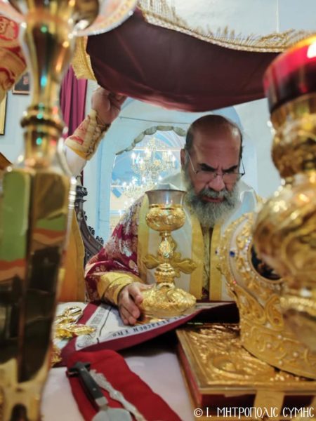 Ο Σεβασμιώτατος, λαμβάνοντας αφορμή από το σημερινό ευαγγελικό ανάγνωσμα της θεραπείας του τυφλού της Ιεριχούς, ανεφέρθη στο θαυμαστό αυτό σημείο, μεταφέροντας νοερά την διάνοια των εκκλησιαζομένων πιστών στην Πύλη της πόλεως και στην οδό όπου ζητιάνευε ο τυφλός. Εκείνη την ημέρα που ο Χριστός περνούσε από εκεί, ο τυφλός ακούγοντας τον θόρυβο του διερχομένου πλήθους που συνόδευε τον Κύριο, ρώτησε να μάθει τι συμβαίνει. Όταν τον πληροφόρησαν, ότι «Ιησούς ο Ναζωραίος παρέρχεται», παρ’ όλο που δεν είχε σωματικά μάτια, «είδε» με τα μάτια της ψυχής του τον Κύριο και τον αποδέχθηκε ως αληθινό Θεό και Σωτήρα του κόσμου, αλλά και του ιδίου. Έτσι άρχισε να βροντοφωνάζει: «Ιησού, Υιέ Δαυίδ, ελέησόν με». Ο κόσμος τον μάλωνε που φώναζε, αλλ’ αυτός όμως ομολογούσε την πίστη και την αγάπη του στον Χριστό πολύ πιο δυνατότερα.
