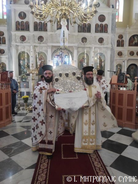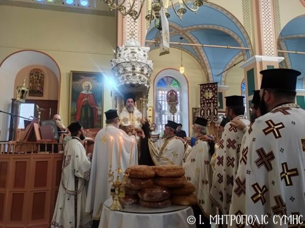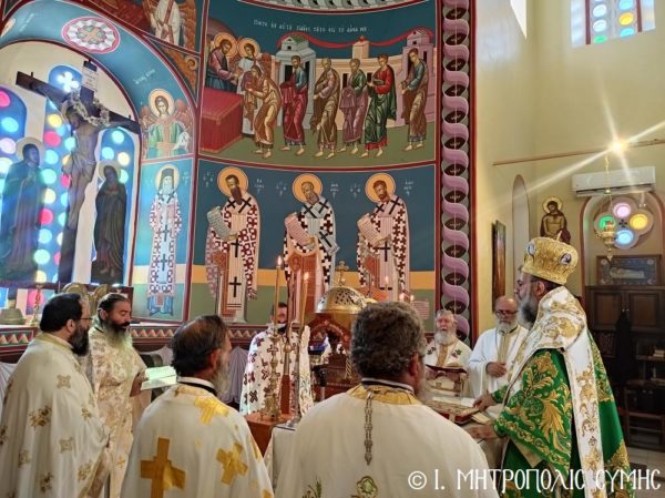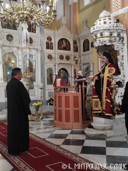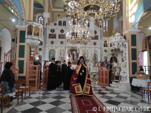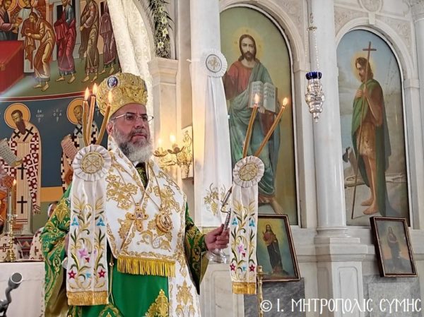 Ο Μητροπολίτης Χρυσόστομος στην πανήγυρη της ενορίας Αγίας Τριάδος Σύμης