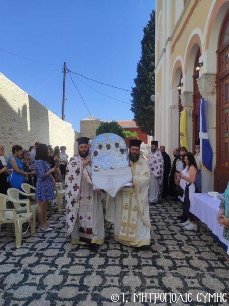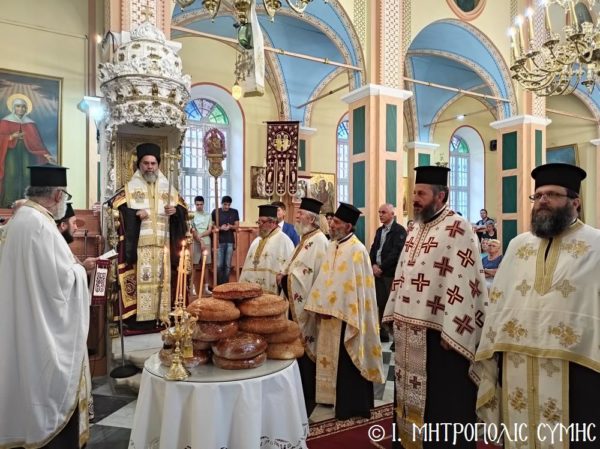 Με την δέουσα εκκλησιαστική τάξη και λαμπρότητα πανηγύρισε το διήμερο 4η και 5η Ιουνίου 2023, η πολυπληθής Ενορία της Αγίας Τριάδος Σύμης. Ο πανηγυρίζων ευμεγέθης Ιερός Ναός δεσπόζει σε περίοπτη θέση στο επάνω μέρος του Χωριού, αποτελώντας την κορωνίδα του γραφικού νεοκλασσικού οικισμού της Συμαικής «Άνω Χώρας».