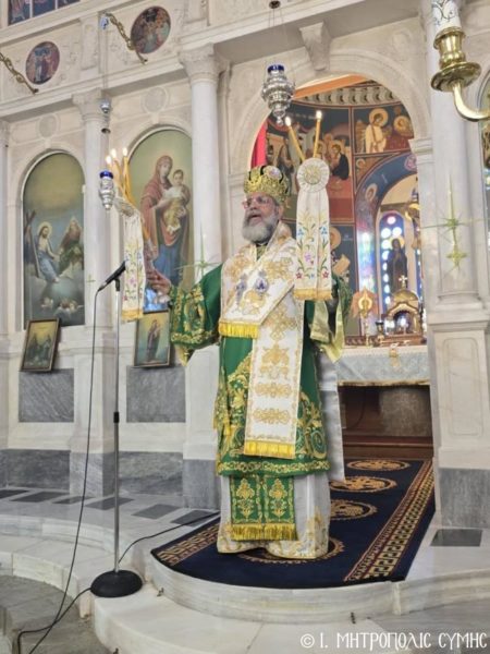 Ο Μητροπολίτης Χρυσόστομος στον Ενοριακό Ιερό Ναό της Αγίας Τριάδος Σύμης