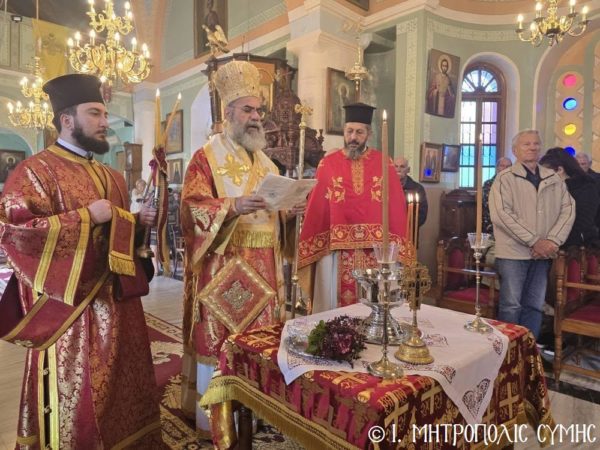 Σήμερα, 2α Μαρτίου 2025 Κυριακή της Τυροφάγου, ημέρα πικράς αναμνήσεως «της από του Παραδείσου της τρυφής εξορίας του Πρωτοπλάστου Αδάμ», ο Σεβ. Μητροπολίτης Σύμης, Τήλου, Χάλκης και Καστελλορίζου κ. Χρυσόστομος χοροστάτησε στον Όρθρο και τέλεσε την Θ. Λειτουργία στον Ενοριακό Ι. Ναό Ευαγγελισμού Θεοτόκου Σύμης, με συλλειτουργούς του τον Εφημέριο της Ενορίας π. Αντώνιο Μανιά και τον Ιεροδιάκονο π. Παύλο Τερεζάκη.