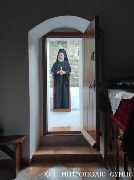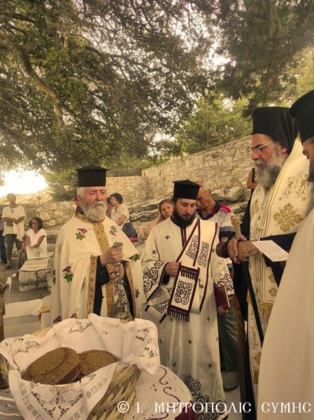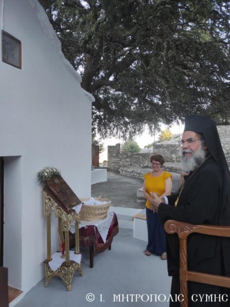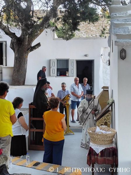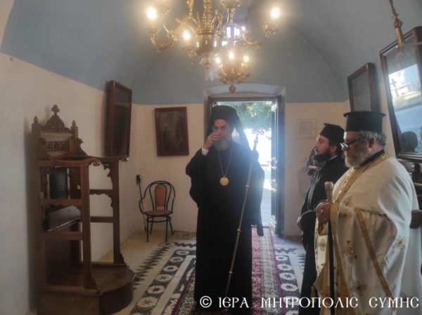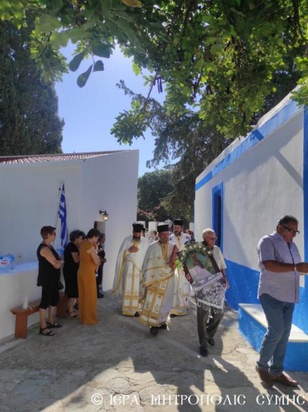 Την κυριώνυμο ημέρα της εορτής, ο Σεβασμιώτατος Μητροπολίτης Σύμης κ. Χρυσόστομος χοροστάτησε στον Όρθρο και εν συνεχεία τέλεσε την Θεία Λειτουργία στον παλαίφατο Κοιμητηριακό Ναό της Αγίας στο Χωριό, όπου στα χρόνια της σκλαβιάς λειτουργούσε η ξακουστή «Σχολή της Αγίας Μαρίνας», ομιλώντας για την ζωή και το διδακτικό παράδειγμα της Αγίας.