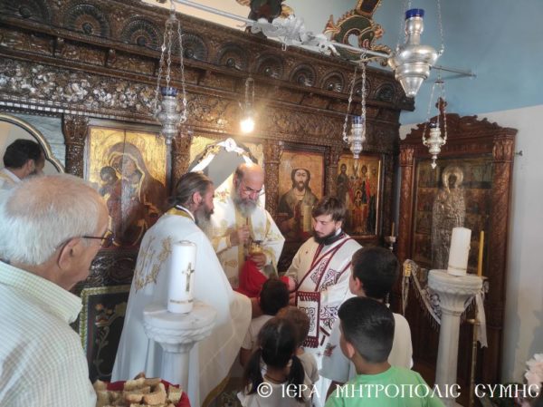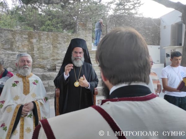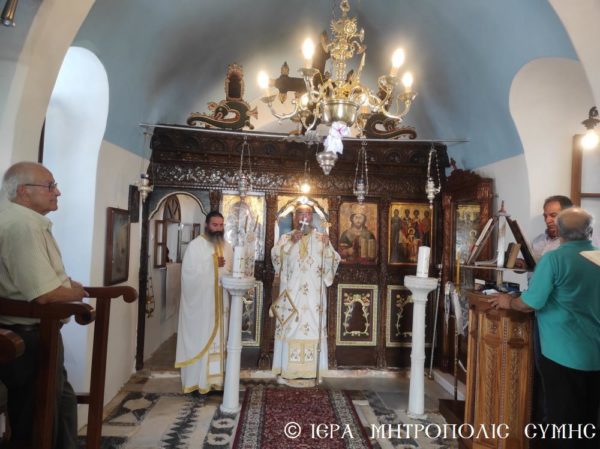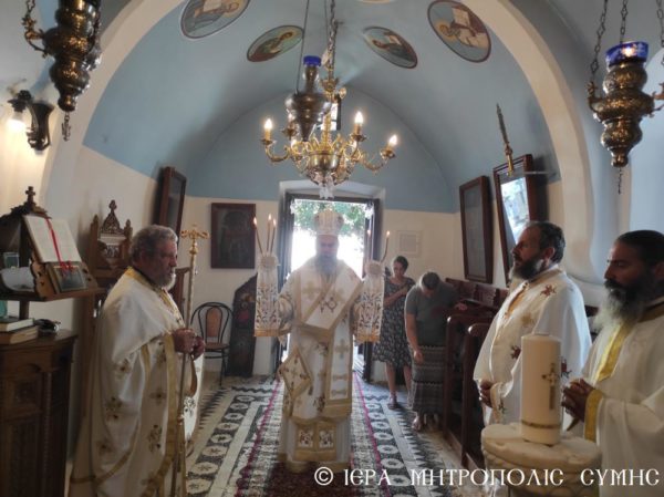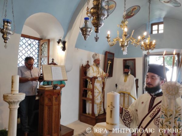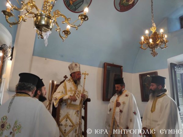 Ο δε Σεβασμιώτατος προ της απολύσεως, τέλεσε Τρισάγιο υπέρ μακαρίας μνήμης και αιωνίου αναπαύσεως αυτών, ευχόμενος προς το εκκλησίασμα, διά πρεσβειών της εορταζομένης Αγίας, έτη πολλά με υγεία κατ’ άμφω, δύναμη και σθένος.