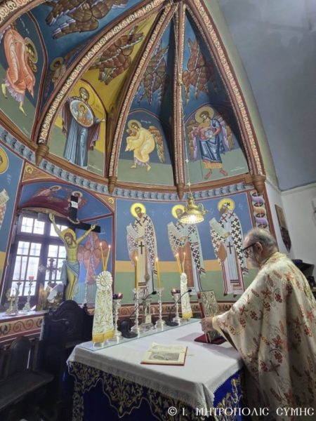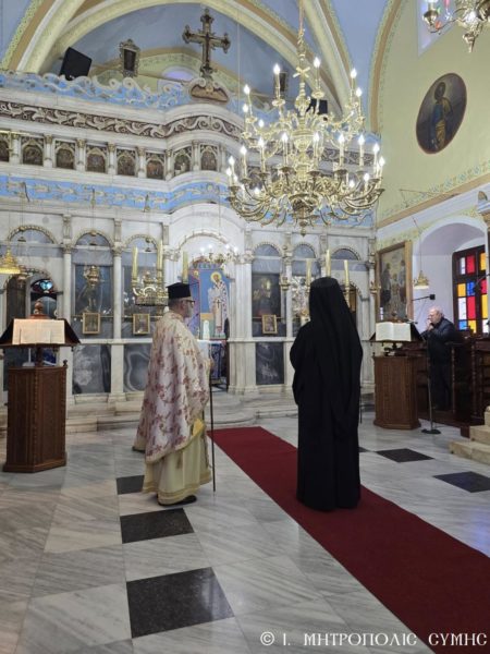 Ο Μητροπολίτης Σύμης κ. Χρυσόστομος χοροστάτησε χθες στον Όρθρο και τέλεσε την Θεία Λειτουργία στον Μητροπολιτικό Ιερό Ναό Αγίου Ιωάννου του Προδρόμου Σύμης, με συλλειτουργό του τον Πρωτοπρ. π. Στέφανο Μακρή, Εφημέριο του Ναού και Γεν. Αρχιερατικό Επίτροπο, ενώ την ιερά υμνωδία εμελώδησαν ο κ. Δημοσθένης Γιανναράς, Πρωτοψάλτης του Ι. Ναού και ο Ιεροψάλτης κ. Ελευθέριος Ξηράκης.