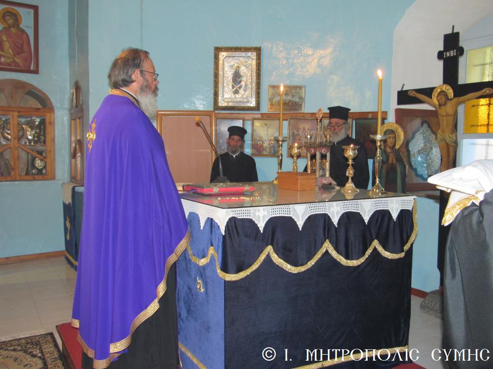 Σήμερα τό ἑσπέρας τῆς Ε΄ Κυριακῆς τῶν Νηστειῶν, 14ης Ἀπριλίου 2019, στόν Ἐνοριακό Ἱ. Ναό Ἁγίου Ἐλευθερίου Σύμης χοροστατοῦντος τοῦ Σεβ. Μητροπολίτου μας κ. Χρυσοστόμου, ἐτελέσθη ἐκ τοῦ Πανοσ/του Ἡγουμένου τῆς Ἱ. Μονῆς Πανορμίτου Ἀρχιμ. τοῦ Οἰκουμ. Θρόνου Ἀντωνίου Πατροῦ καί τοῦ Διακόνου π. Γεωργίου Κακακιοῦ, ὁ τελευταῖος Κατανυκτικός Ἑσπερινός τῆς ἐφετινῆς Μεγάλης Τεσσαρακοστῆς. Στήν Ἀκολουθία ἔψαλαν τά παιδιά τῆς Χορωδίας τοῦ Φροντιστηρίου Βυζαντινῆς Μουσικῆς τῆς Ἱ. Μητροπόλεως, ὑπό τήν διεύθυνση τοῦ Καθηγητοῦ καί Χοράρχου κ. Μερκουρίου Γιανναρᾶ. Συμπροσευχόμενοι δέ ἀπό τοῦ Ἱεροῦ Βήματος, ἦταν ἅπαντες οἱ Ἐφημέριοι τῶν Ἐνοριῶν τῆς Νήσου.