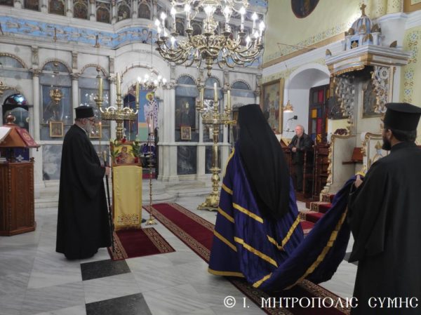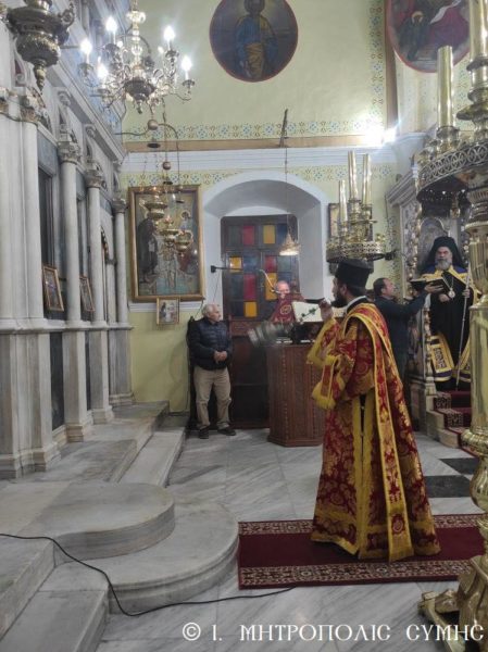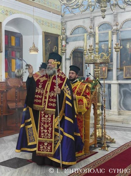 Με ιδιαιτέρα κατάνυξη και ιεροπρέπεια εψάλη το απόγευμα της  Παρασκευής 3 Μαρτίου 2023 από τον Σεβασμιώτατο Μητροπολίτου Σύμης, Τήλου, Χάλκης και Καστελλορίζου κ. Χρυσοστόμου η διατεταγμένη ακολουθία των Α΄ Χαιρετισμών προς την Υπεραγία Θεοτόκο, στον Ιερό Μητροπολιτικό Ναό Αγίου Ιωάννου Προδρόμου Σύμης, συμπαραστατουμένου υπό του Αιδεσιμ. Πρωτοπρεσβυτέρου π. Στεφάνου Μακρή, Εφημερίου του Ναού και Γεν. Αρχιερατικού Επιτρόπου, ως και του Ιεροδιακόνου π. Παύλου Τερεζάκη.