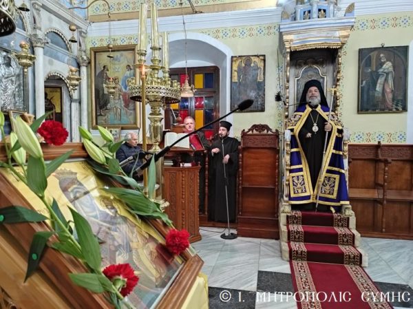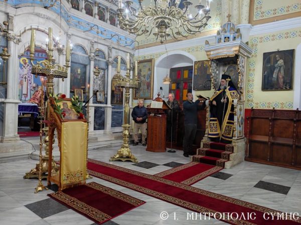 Προ της απολύσεως ο Σεβασμιώτατος απηύθυνε εκ μέσης καρδίας σύντομο κήρυγμα περί του Προσώπου της Υπεραγίας Θεοτόκου και του ρόλου που Εκείνη διεδραμάτισε για την σωτηρία του ανθρωπίνου γένους, επικαλούμενος τις ακοίμητες πρεσβείες Της.