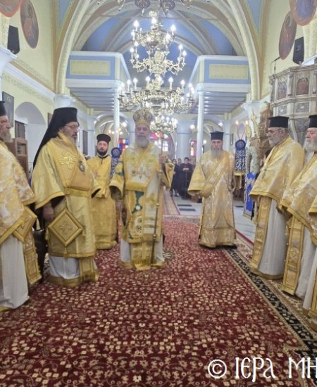 Την κυριώνυμο ημέρα της εορτής, ο Σεβ. κ. Χρυσόστομος χοροστάτησε στον Όρθρο και τέλεσε την Θ. Λειτουργία μετ’ Αρτοκλασίας, με συλλειτουργούς του τον Θεοφιλ. Βοηθό Επίσκοπο Ροδοστόλου κ. Αντώνιο, ως και άπαντες τους ως άνω Κληρικούς. Τα αναλόγια λάμπρυναν κατά την Πανήγυρη, ο Πρωτοψάλτης του Μητροπολιτικού Ι. Ναού κ. Δημοσθένης Γιανναράς, μετά του υιού του κ. Μερκουρίου, ο κ. Αγαπητός Μιχελλής, ο κ. Ελευθέριος Ξηράκης, ο κ. Λάζαρος Κουμεντάκης, ο κ. Πανορμίτης Κακακιός και ο κ. Ευάγγελος Λαγός.