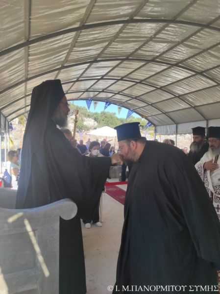 Τον ιερό χώρο του Βήματος κατέκλυσαν εκατοντάδες φιλάγιοι προσκυνητές από την Σύμη, Ρόδο και αλλού, ενώ συμμετείχαν οι πλείστοι των Εφόρων και των εργαζομένων της Ι. Μονής Πανορμίτου, ο Άρχων Δικαιοφύλαξ του Οικουμενικού Θρόνου κ. Θεόδωρος Παπαγεωργίου, Δικηγόρος Ρόδου, καθώς και στρατιωτική αντιπροσωπεία της Δ.Α.Ν. Σύμης με επικεφαλής τον Διοικητή, Συνταγματάρχη κ. Παν. Βρανά. Σημειώνεται δε, ότι όλοι οι προσκυνητές μετεφέρθησαν από νωρίς το πρωί αφιλοκερδώς με το πλοιάριο «Ποσειδών» του Συμαίου πλοιοκτήτου κ. Ιωάννου Γιαννίκου, από τον λιμένα του Πανορμίτη.