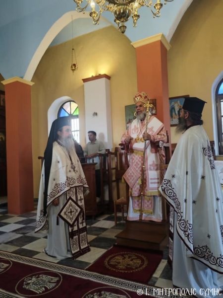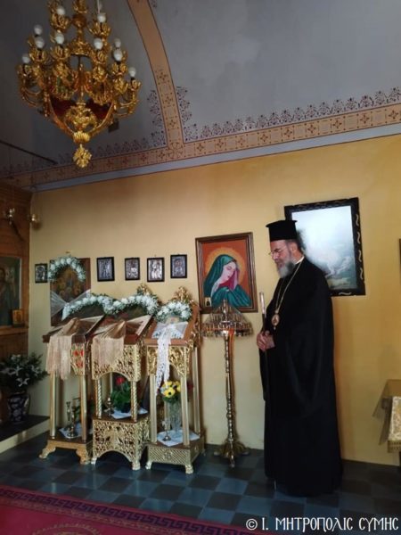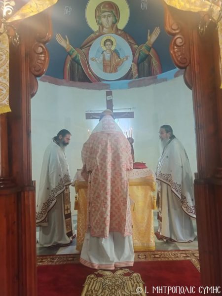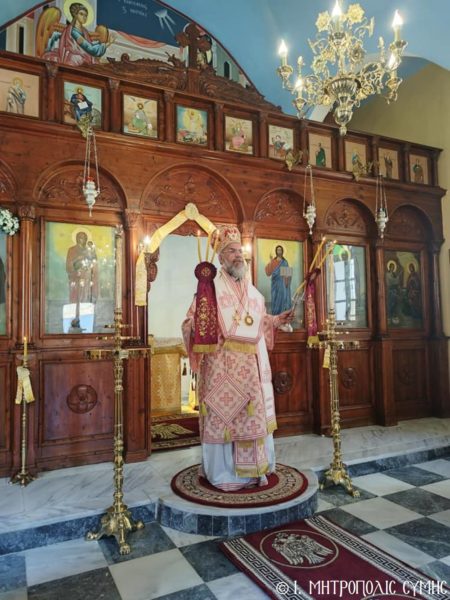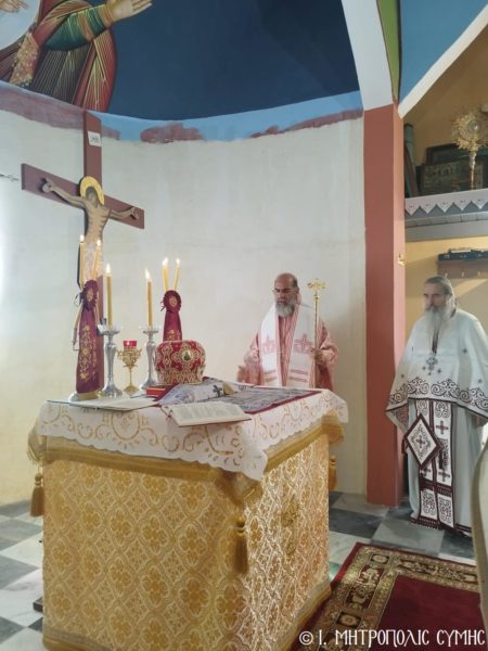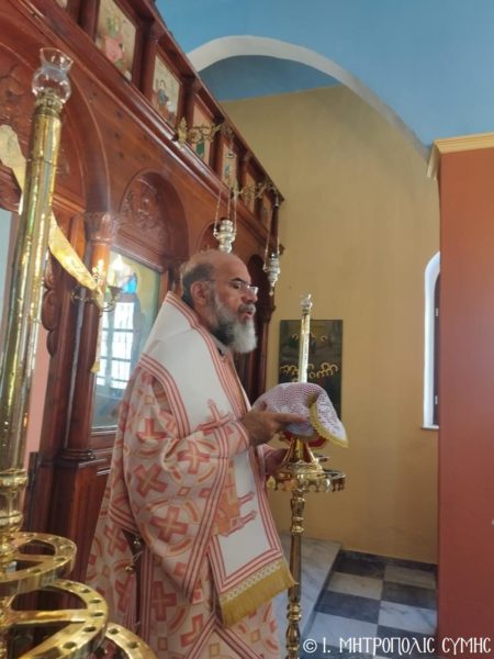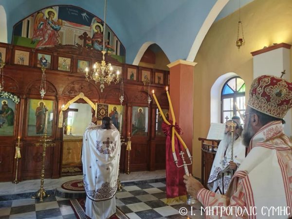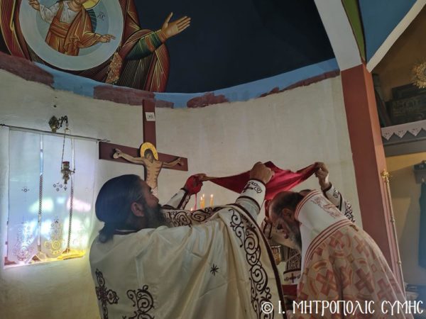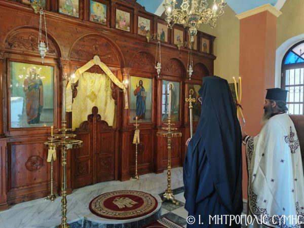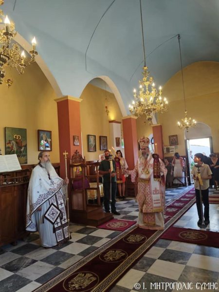 Σήμερα Κυριακή προ της Υψώσεως του Τιμίου Σταυρού, 8η Σεπτεμβρίου κυριώνυμος ημέρα, ο Σεβ. Μητροπολίτης Σύμης κ. Χρυσόστομος χοροστάτησε στον Όρθρο και τέλεσε την Θεία Λειτουργία στον Προσκυνηματικό Ι. Ναό Γενεθλίου Θεοτόκου της «Πειραιώτισσας» στην Σύμη, με συλλειτουργούς του, τον φιλοξενούμενο Πανοσιολ. Αρχιμανδρίτη Γεράσιμο Καραμολέγκο, Γραμματέα της Ιεράς Συνόδου της Εκκλησίας της Ελλάδος και Ιεροκήρυκα της Ι. Μητροπόλεως Περιστερίου και τον Εφημέριο της Ενορίας Αγίου Δημητρίου Σύμης π. Γεώργιο Κακακιό. Τα δε αναλόγια διηκόνησαν οι Ιεροψάλτες, κ. Ελευθέριος Ξηράκης και κ. Γεώργιος Κατρακάζας.