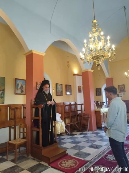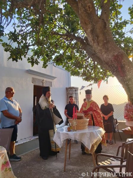 Το εσπέρας της παραμονής, Σάββατο 7η Σεπτεμβρίου 2024, ο Σεβ. Μητροπολίτης Σύμης κ. Χρυσόστομος, συμπαραστατούμενος από τον Εφημέριο της Ενορίας Αγίου Γεωργίου Πεδίου Σύμης π. Χρήστο Σταθόπουλο, χοροστάτησε στον Μέγα πανηγυρικό Εσπερινό, ο οποίος τελέσθηκε στο γραφικό εκκλησάκι της Παναγίας του «Στύλου» κατά την Συμαϊκή ντοπιολαλιά, που βρίσκεται επί της επαρχιακής οδού Σύμης-Πανορμίτη.
