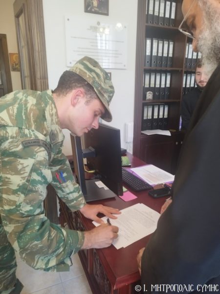 O Μητροπολίτης Σύμης, Τήλου, Χάλκης και Καστελλορίζου κ. Χρυσόστομος, παρέδωσε χθες, στα Γραφεία της Ιεράς Μητροπόλεως, είδη σύγχρονου ιατρικού εξοπλισμού στον Στρατιωτικό Διοικητή της Δ.Α.Ν. Σύμης, Συνταγματάρχη κ. Γεώργιο Ζιώγα, τον Διοικητή του 549 Τ.Ε. Σύμης, Αντισυνταγματάρχη κ. Στυλιανό Φωκά και τον Στρατιωτικό Ιατρό κ. Κωνσταντίνο Αγγελόπουλο, Ανθυπίατρο, τα οποία με την προσωπική διαμεσολάβηση του Σεβασμιωτάτου, κατόπιν αιτήματος προς αυτόν του Ανθυπιάτρου, απέστειλε το γνωστό «Διαγνωστικό και Θεραπευτικό Κέντρο Αθηνών ΥΓΕΙΑ Μ.Α.Ε.».