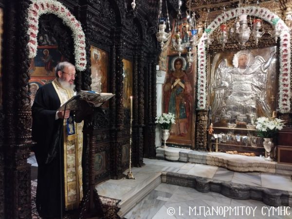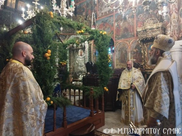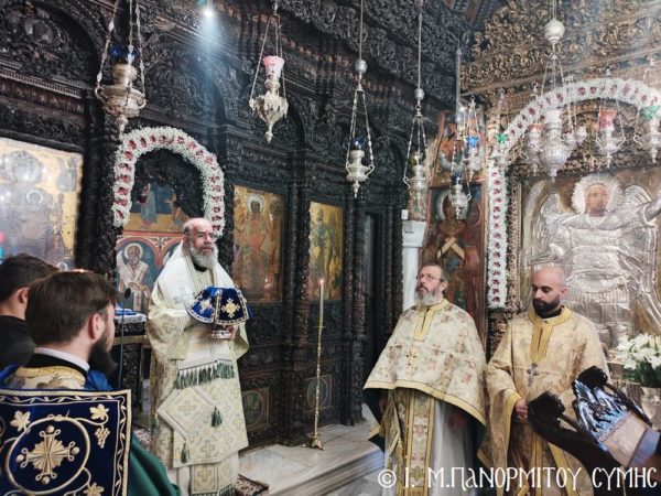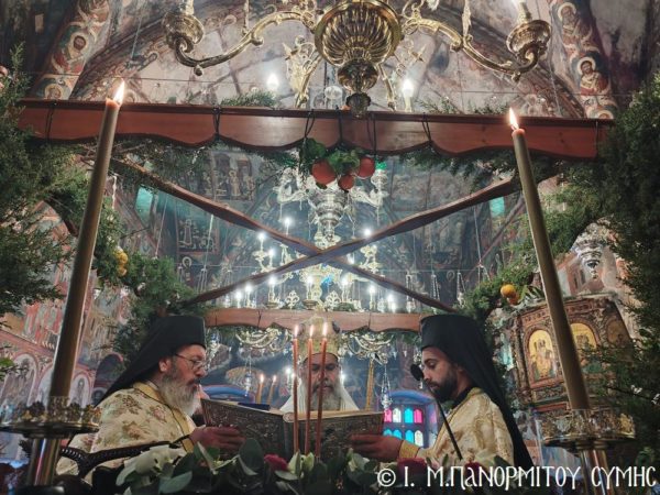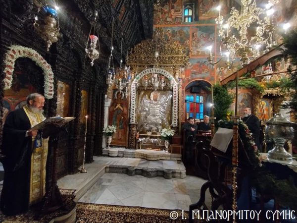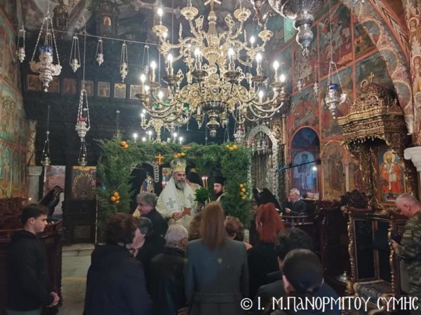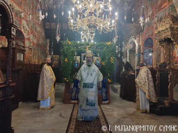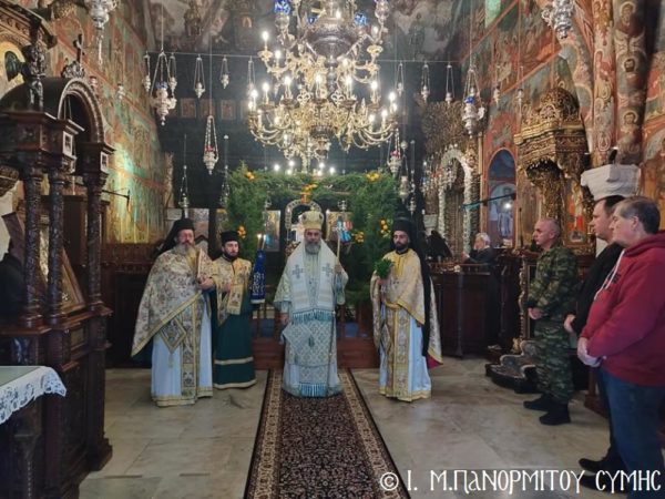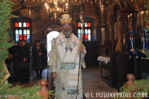 Παραμονή της εορτής των Θεοφανείων, ο Μητροπολίτης Σύμης, Τήλου, Χάλκης και Καστελλορίζου κ. Χρυσόστομος χοροστάτησε στον Όρθρο, την Ακολουθία των Μεγάλων Ωρών και τέλεσε την Θεία Λειτουργία του Μεγάλου Βασιλείου μετά του Πανηγυρικού Εσπερινού της Εορτής στην Ιερά Μονή Ταξιάρχου Μιχαήλ του Πανορμίτου Σύμης.