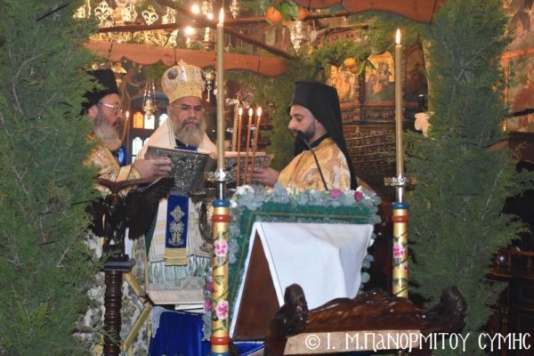 Συλλειτούργησαν ο Πανοσιολ. Καθηγούμενος Αρχιμανδρίτης π. Αντώνιος Πατρός, ο Αρχιμανδρίτης π. Ανδρέας Δημητρίου και ο Ιεροδιάκονος π. Παύλος Τερεζάκης.
