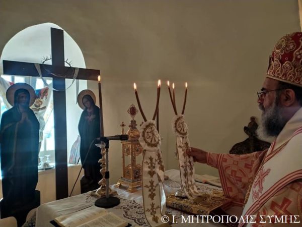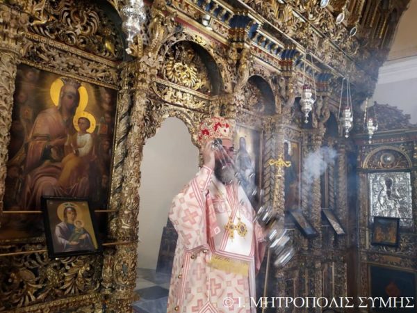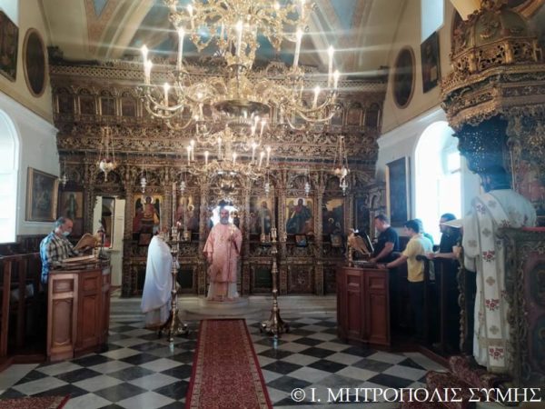 Την ΣΤ΄ Κυριακή από του Πάσχα, επονομαζομένη του Τυφλού ένεκα της αναγινωσκομένης ευαγγελικής περικοπής της σχετικής αυτής θεραπείας, ο Σεβ. Μητροπολίτης Σύμης κ. Χρυσόστομος χοροστάτησε στον Όρθρο και τέλεσε την Θ. Λειτουργία στον παλαίφατο ενοριακό Ι. Ναό Παναγίας Κεχαριτωμένης Σύμης, με συλλειτουργούς του τον Πανοσ. Αρχιμανδρίτη π. Αντώνιο Πατρό, Ηγούμενο της Ι. Μονής Πανορμίτου, ο οποίος εξυπηρετεί ως ιερατικώς Προιστάμενος την συγκεκριμένη Ενορία και τον Διάκονο π. Γεώργιο Κακακιό. Την ι. υμνωδία ανέμελψαν γλυκυφθόγγως οι Ιεροψάλτες κ. Νικήτας Βογιατζής, κ. Μερκούριος Γιανναράς και κ. Εμμανουήλ Κυπριώτης.